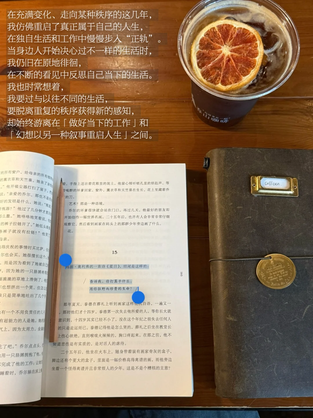 在充满变化、走向某种秩序的这几年,我仿佛重启了真正属于自己的人生,在独自生活和工作中慢慢步入“正轨”。当身边人开始决心过不一样的生活时,我仍旧在原地徘徊,在不断看见中反思自己当下的生活。
