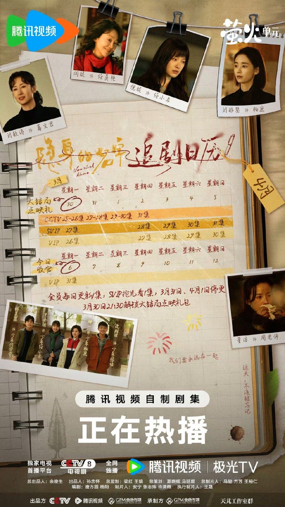 隐身的名字追剧日历 已更新📅故事行至终章,所有伏笔都将揭开,所有隐忍终有回响,所有隐身的名字终被看到。3月30日🐧解锁点映礼包,一键直通精彩大结局!锁定萤火单元,一起见证那些隐身的名字 如何向光而行!