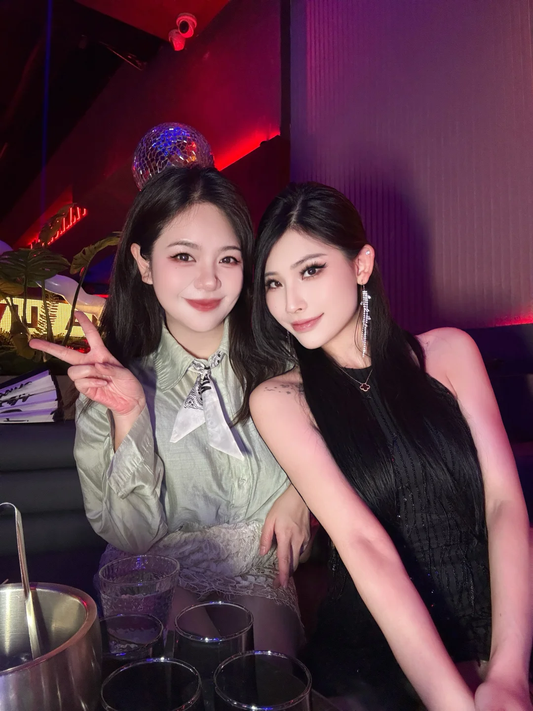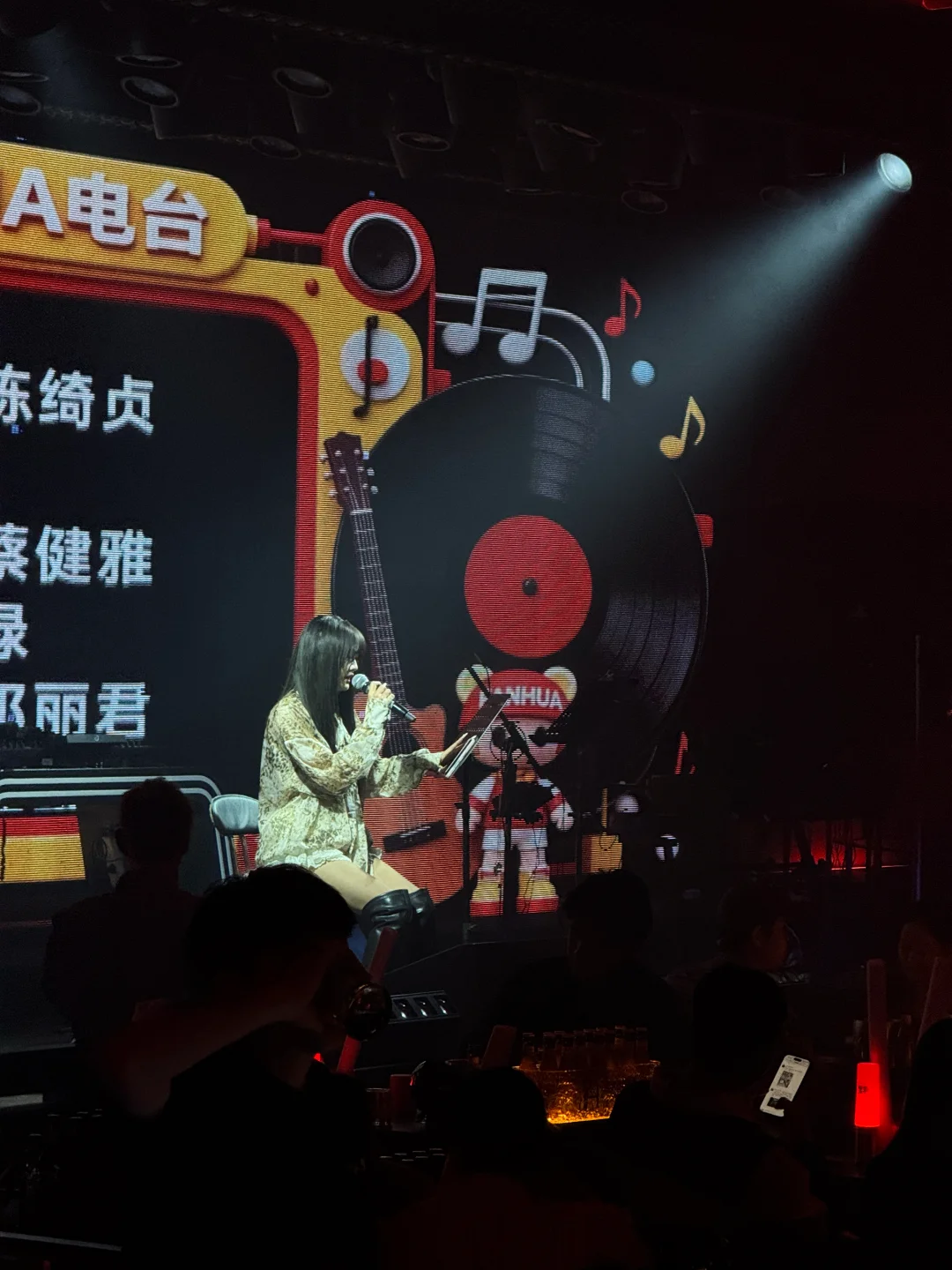 一边听着现场演唱,一边和闺蜜边拍边喝