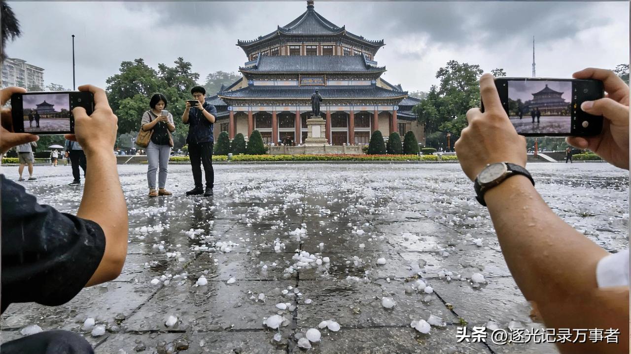 实拍广州冰雹现场!车窗被砸穿,地标前满地冰粒。 今天广州的天气太吓人了!强对流天气突袭,冰雹噼里啪啦砸下来,汽车天窗都被砸出好几个洞,中山纪念堂前的地面铺满了冰粒,还有市民手里捧着刚落下的冰雹,大小跟硬币差不多。 这种天气真的太突然了,提醒大家最近出门一定要多留意天气预报,尽量别在户外逗留,保护好自己和车辆!广州柠檬雨 户外冰雹 乌当冰雹 雷击冰雹 广东三月下冰雹 花都冰雹天气 首都冰雹