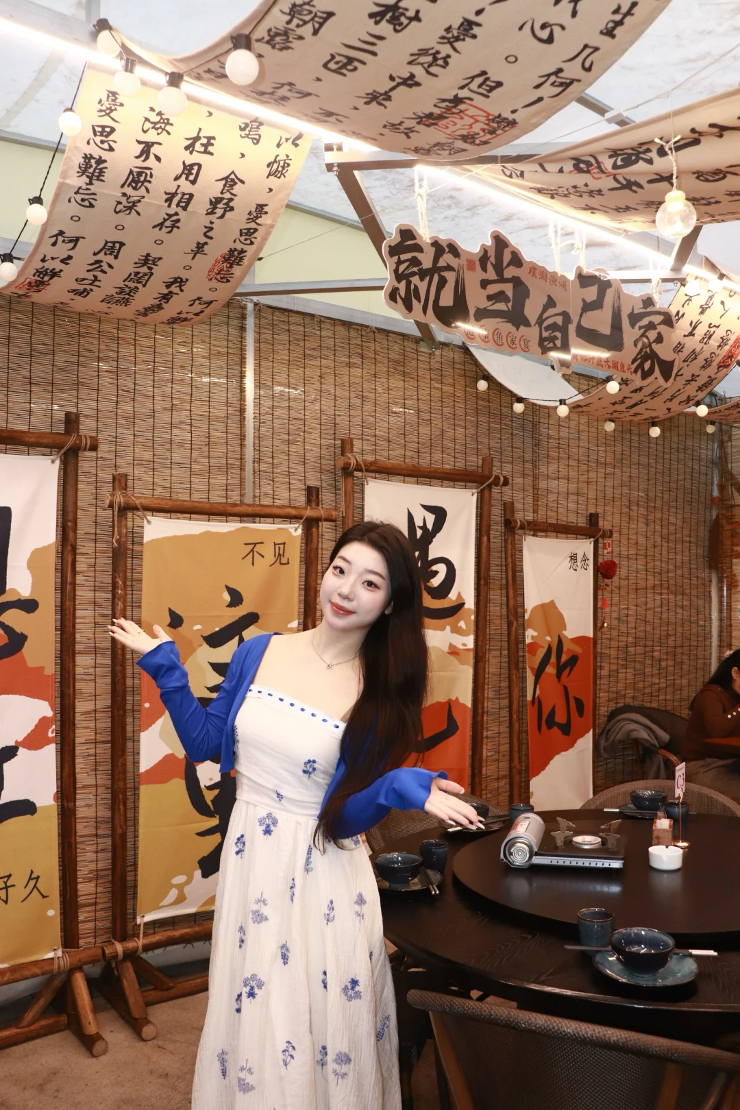 46岁秦岚在宁波一家餐馆吃饭,和老板一起拍摄合影。她看起来好年轻,身材太好了!