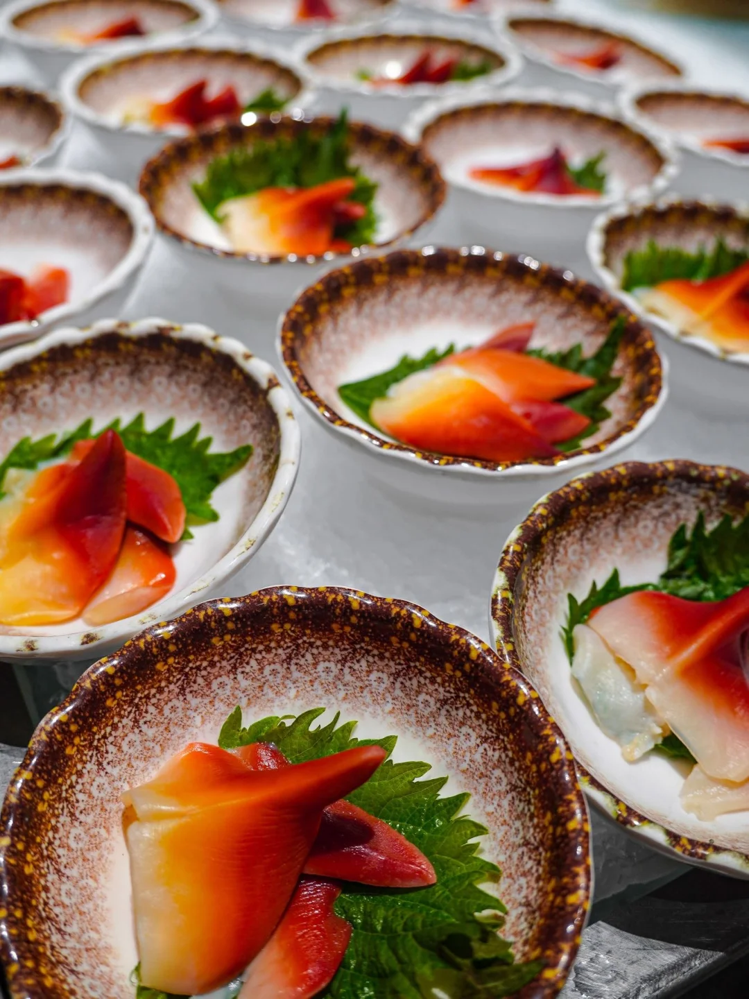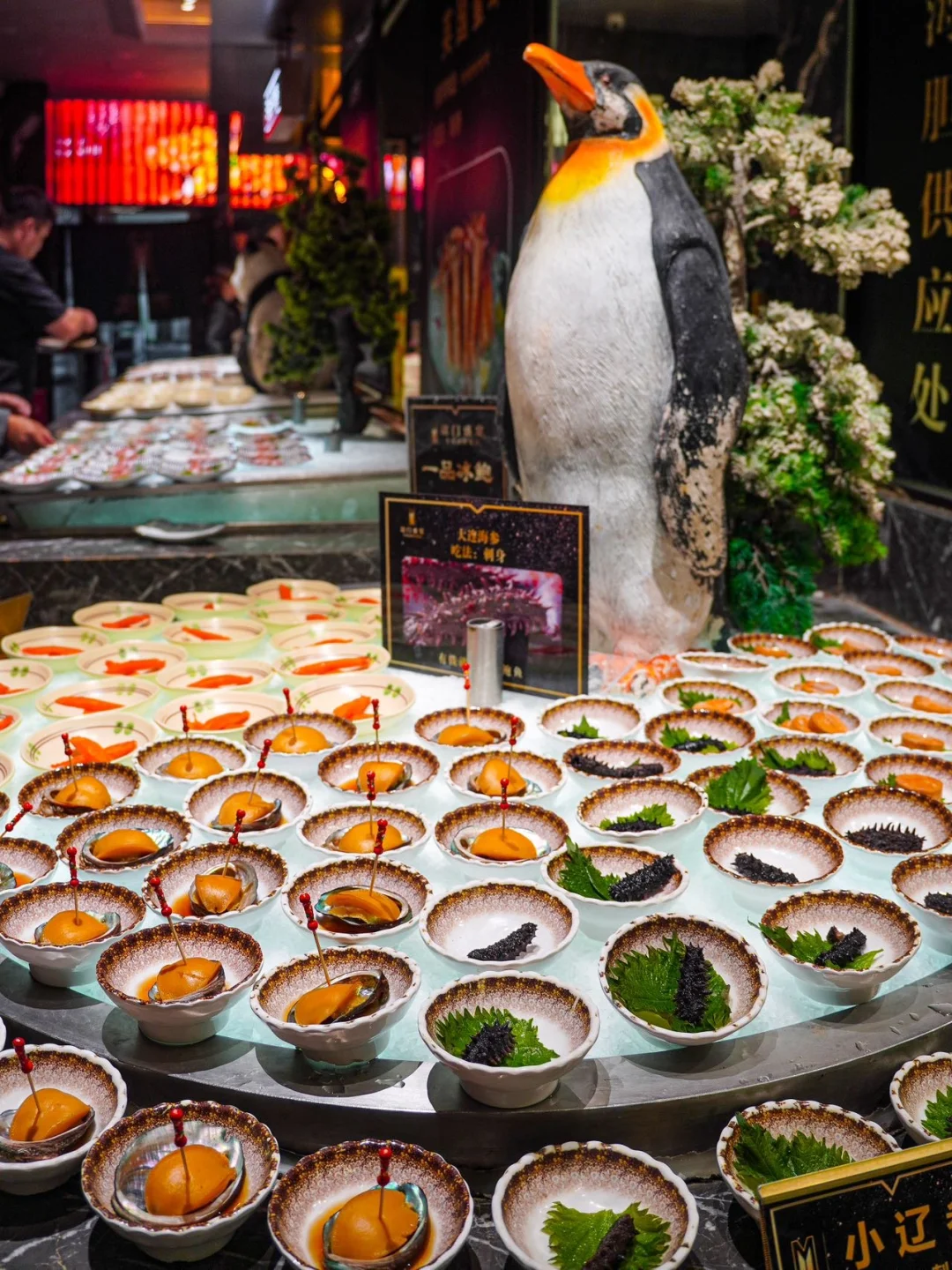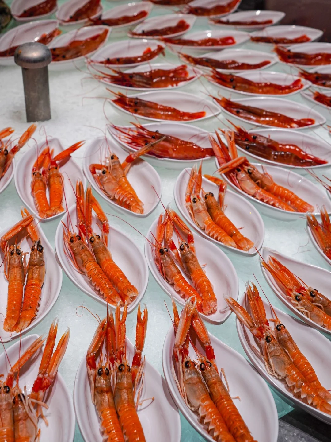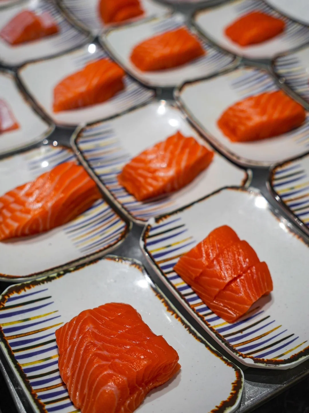 刺身区的加拿大牡丹虾、英国鳌虾、马粪海胆都是无限量,三文鱼厚切,甜虾带籽,品质相当能打