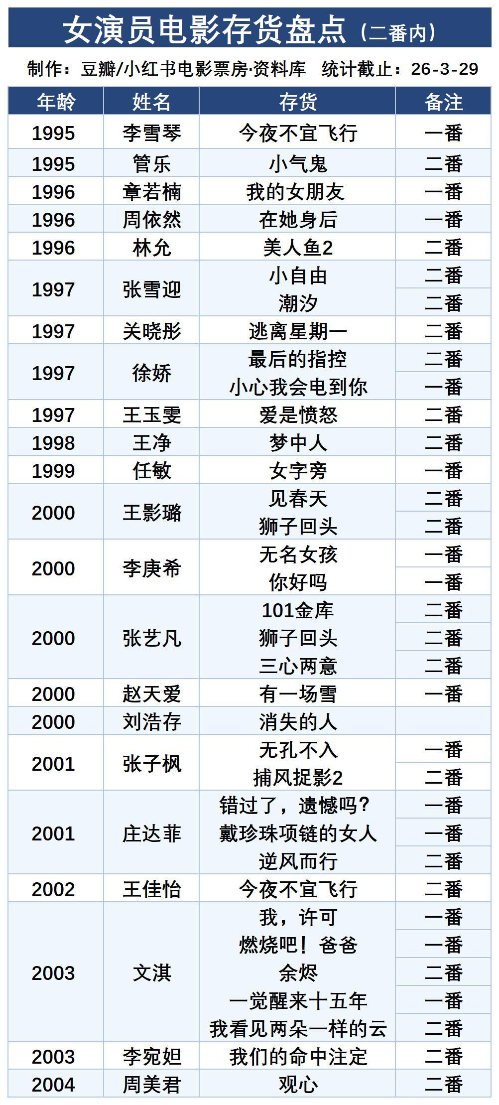 女演员电影存货盘点