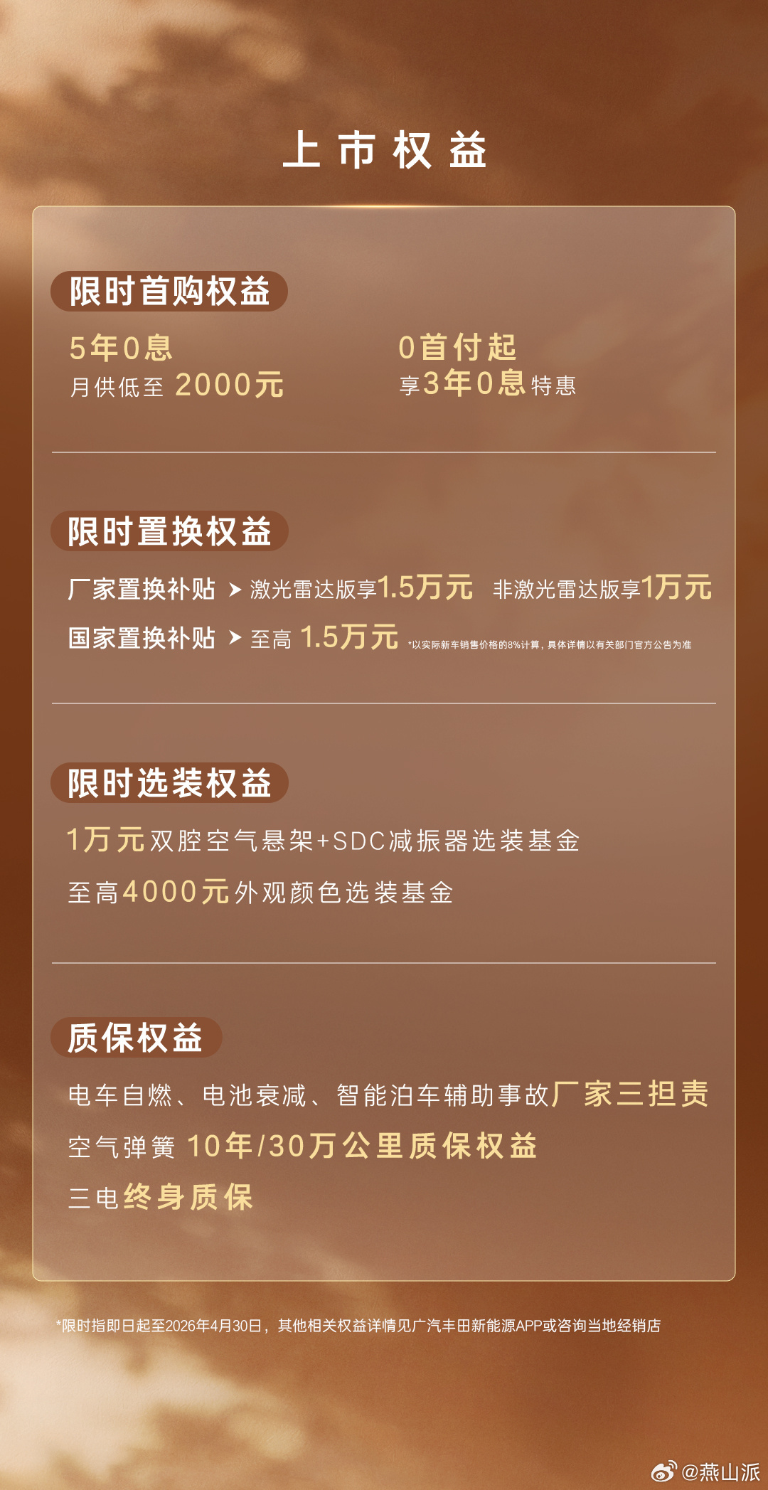 更强的是,我之前一直夸的厂家三担责,不管是自燃、电池快速衰减,还是辅助驾驶出现问题,厂家都直接担责。铂智7上市限时补贴权益价14.78万起丰田铂智7限时补贴权益全系20万内