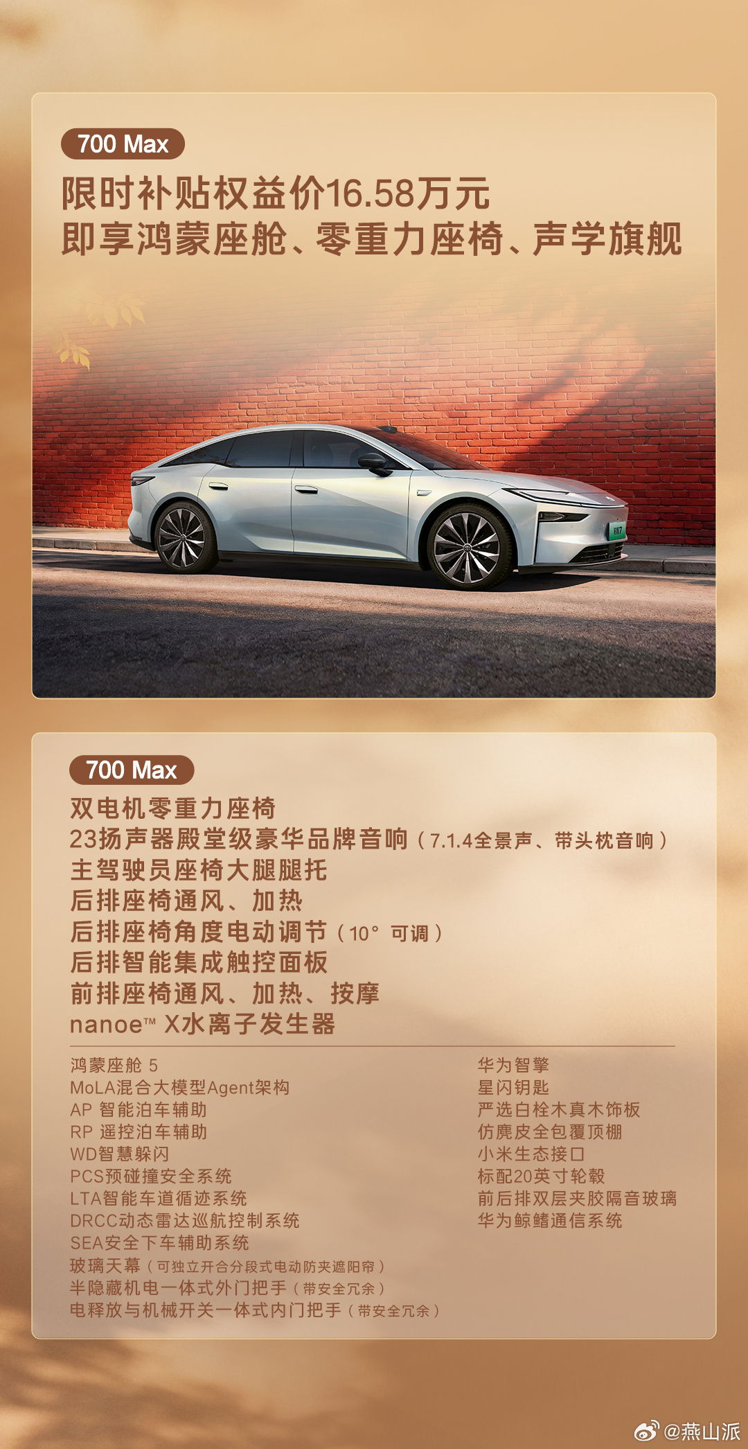 铂智7的价格可以说很有诚意,为什么这么说?因为这个价格就能买到鸿蒙座舱、激光雷达智驾、双腔空悬,以往这三件套基本不可能同时出现在20万以内,但铂智7直接给你一次配齐。甚至17万多就能上激光雷达+空悬,顶配19.98万直接拉满豪华。
