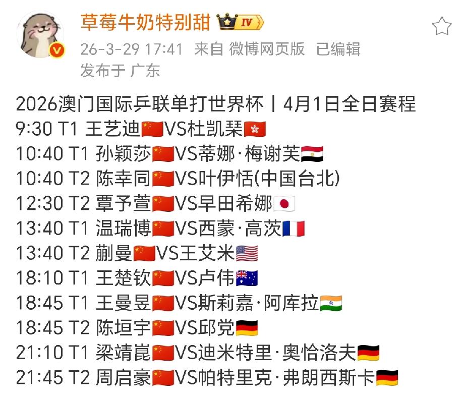 澳门世界杯三天赛程已出, 前两天轮休, 最后一天集体上班, 真是要多精彩有多精彩。 澳门世界杯抽签结束, 签位好坏已定, 赛程头三天安排得满满当当。 国乒头两天一人打一轮, 第三天全部上场打一遍。 要说签位还是男队让人担忧, 梁靖崑直接撞上德国世界冠军奥恰洛夫, 这一仗可是小组赛里的“生死之战”。 陈垣宇遇上欧洲冠军邱党, 硬实力在陈垣宇之上, 要想赢必须超长发挥才可以。 温瑞博遇上法国老将西蒙高茨, 他赢过许昕、赢过梁靖崑、赢过林高远, 温瑞博这一关也是不好过呀。 周启豪是最惨的一个, 遇到德国主力弗朗西斯卡, 和日本新星川上流星, 真是关关难过关关过呀。 男队真是太难了, 希望这次国乒男队都超常发挥, 打出自己最好的水平。 (图片源自于网络)