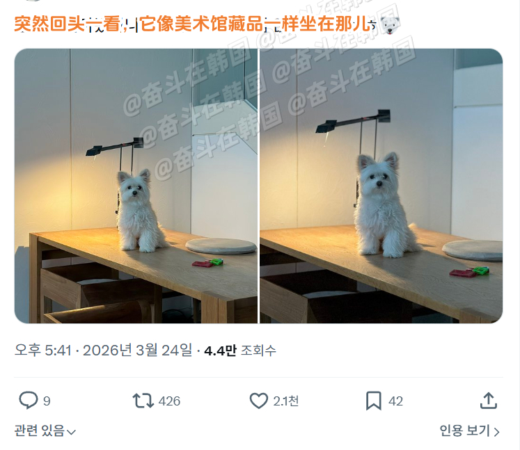 像美术馆藏品一样坐在那儿的小狗~海外新鲜事热点现场