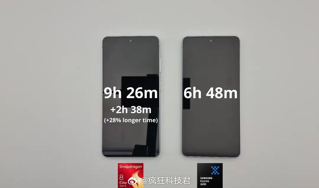 谁懂啊!同样是旗舰芯片,续航差这么多?看到实测下来,骁龙8 Elite Gen 5 比 Exynos 2600 多扛了快2个半小时!Exynos还在录视频时过热闪退,这体验也太糟心了,感觉芯片工艺和架构都拖了后腿。以后选手机还是得看实际续航啊!数码资讯