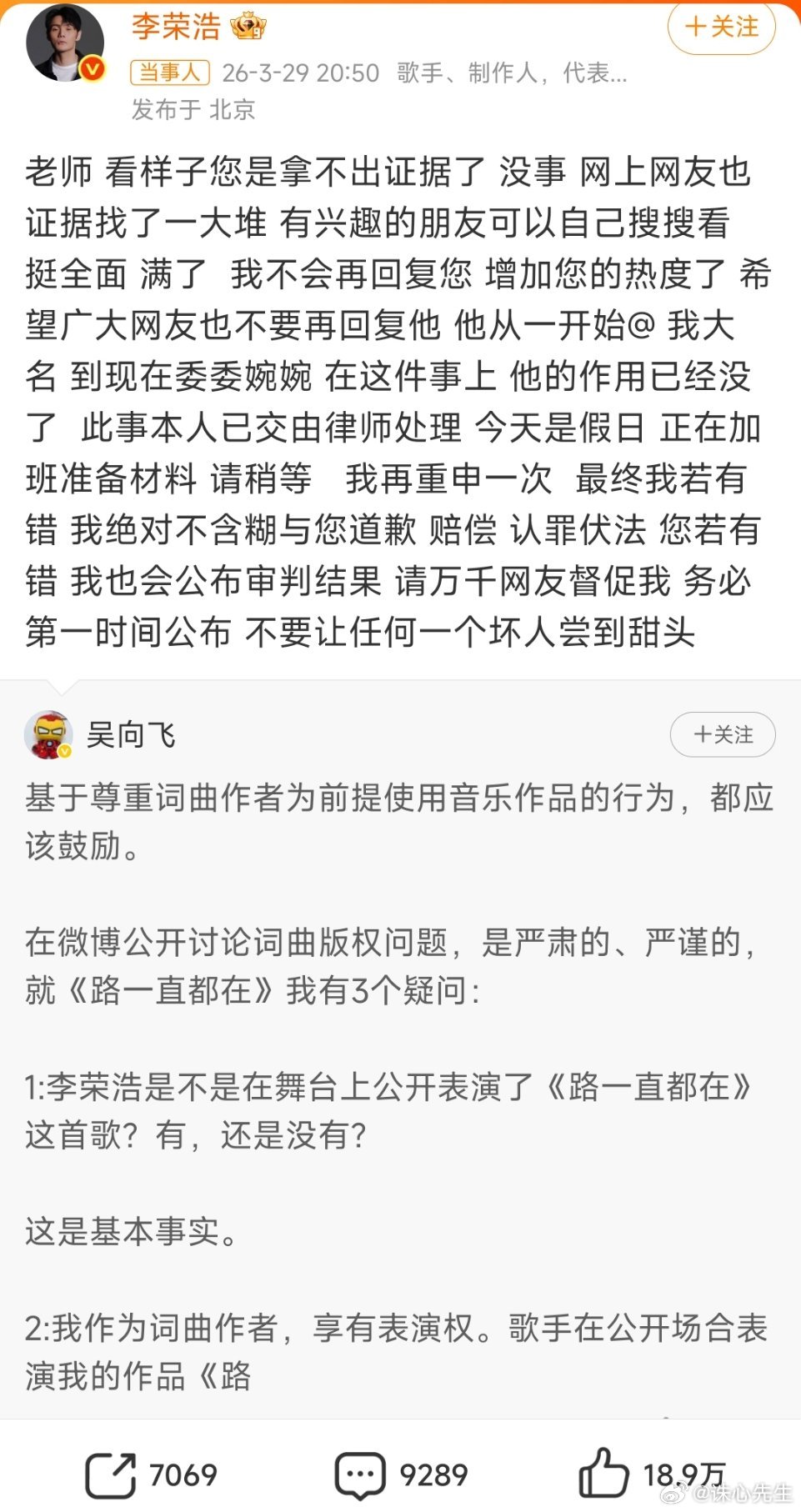 李荣浩秒回