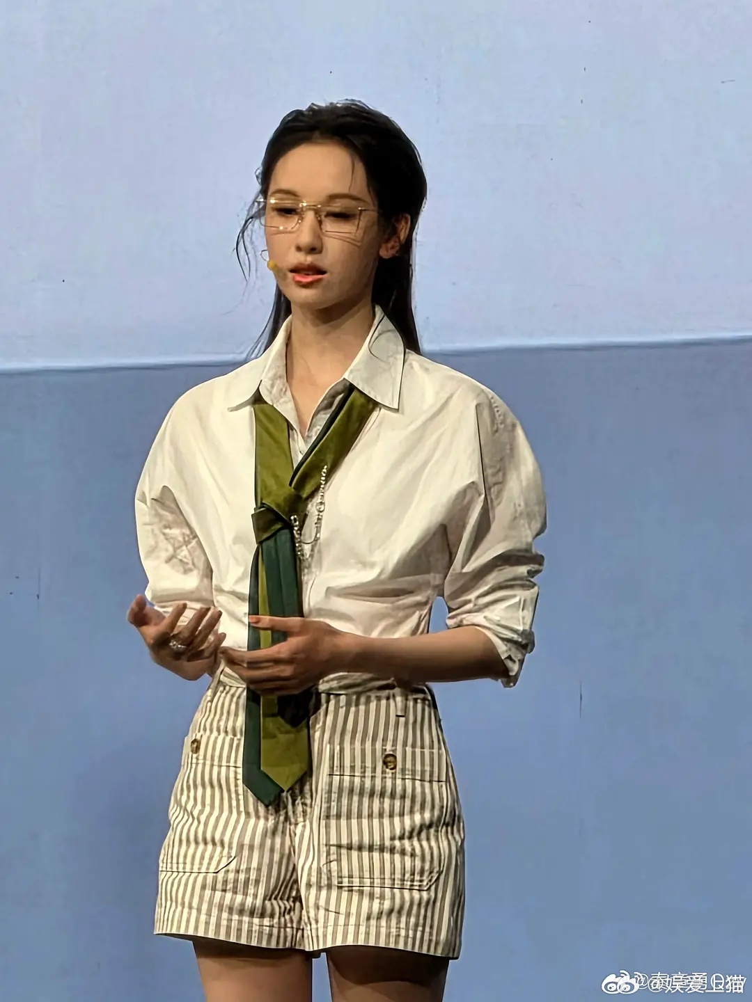 陈都灵这组高智感学姐造型太绝了!白衬衫+绿领带,金丝眼镜一戴,清冷又干练[赞]谁
