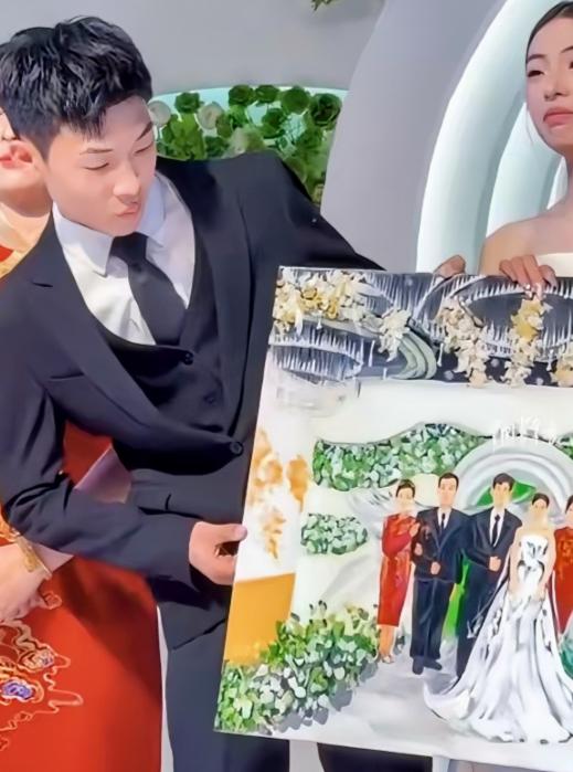 泪目!河北邯郸,一对新人结婚,在婚礼现场的合影环节时,新娘突然喊着说等一下,随后从台下拿了一幅画上来,新郎看到后当场泪目,因为画里有新郎已去世父亲,就连一向见过世面司仪,看到这一幕都没忍住。 这场婚礼举办在河北邯郸一家高端婚礼酒店,现场布置以白色与绿色为主,简约大气又透着温馨,新人双方都是本地普通家庭,没有铺张奢华的排场,却藏着最动人的真情。 新娘穿着洁白的婚纱,挽着新郎的手臂,按照流程准备拍摄大合影,身后是双方父母与亲友,镜头前的新人笑容满面,新郎特意整理了领带,努力把情绪压到最喜庆的状态,毕竟这是人生中最值得庆祝的日子,他不想让悲伤成为主旋律。 就在司仪喊出“三二一”准备按下快门的瞬间,新娘突然抬手打断了现场的节奏,声音带着一丝哽咽却异常坚定,她说:“等一下,我有个东西要给大家看。” 全场瞬间安静下来,所有人的目光都聚焦在新娘身上,她快步走下婚礼舞台,来到台下指定位置,从工作人员手中接过一幅装裱好的油画。 这幅画不算精致,却带着浓郁的手绘质感,画面中央是一对新人的婚礼场景,新郎身着西装,新娘披着白纱,两侧却多了两个熟悉的身影——那是新郎的父母,父亲穿着笔挺的中山装,笑容温和,母亲身着红色旗袍,气质温婉,一家人站在婚礼拱门下,仿佛真的团聚在了一起。 新娘拿着画缓缓走回舞台,轻轻将画递到新郎面前。新郎原本带着喜庆的笑容,在看到画作的瞬间骤然僵住,他的目光从画作上移开,又颤抖着落回去,嘴唇抿了又抿,眼眶瞬间泛红。 他太熟悉父亲的模样了,尤其是父亲那双眼睛,和画作里的一模一样,哪怕时隔多年,这份记忆依旧刻在骨子里。 他下意识伸出手,指尖轻轻触碰画作上父亲的身影,像是在触碰久违的温暖,下一秒,滚烫的眼泪砸落在画作边缘,他再也忍不住,背过身去偷偷擦拭眼泪,这个平日里扛下所有压力的大男孩,在这一刻彻底破防。 站在一旁的司仪也被这一幕打动了,他从业多年,见过无数婚礼现场的感人瞬间,有新人告白落泪的,有父母送嫁哽咽的,却从未见过这样的场景。 他原本熟练的主持词卡了壳,深吸了好几口气才勉强平复情绪,声音带着一丝不易察觉的颤抖,努力完成了后续的流程,却在镜头扫过画作时,悄悄别过头抹了抹眼睛。 现场的亲友也安静了下来,不少宾客悄悄拿出手机记录这一幕,不少长辈红了眼眶,新郎的母亲更是紧紧握住新娘的手,眼泪止不住地往下流,她知道,儿子心里藏着太多对父亲的思念,也知道新娘这份心意有多珍贵。 新郎的父亲在他读大学时因病去世,那是家里最艰难的一段日子,父亲却始终咬牙支撑,只为让他安心读书。父亲生前最大的愿望就是看着儿子成家立业,穿上西装站在婚礼台上,可他终究没能等到这一天。 从筹备婚礼开始,新郎就时刻提醒自己要开心,要把最喜庆的一面展现给所有人,他主动删掉了所有关于父亲的伤感视频,刻意避开相关的话题,甚至在试穿婚纱时,看到父亲的旧照片都会下意识移开目光,他不想让这份遗憾影响到婚礼的氛围,更不想让新婚的妻子和家人跟着难过。 新娘是最懂新郎心思的人。在两人恋爱的日子里,她不止一次看到新郎独自坐在阳台,手里摩挲着父亲的旧照片发呆,眼神里满是思念和惋惜。 她知道,父亲不仅是新郎的遗憾,也是新郎心里的一道坎,她想让父亲以另一种方式出现在婚礼上,让他亲眼见证儿子的幸福。 新娘私下花了半个月的时间,找了专业的画师,结合新郎给的父亲照片与婚礼场景,一笔一笔画出这幅画,她没有告诉新郎,就是想在这个最特别的时刻,给他一个最大的惊喜。 婚礼现场的氛围从最初的喜庆热闹,变成了此刻的温情脉脉。新郎平复了情绪,重新拿起话筒,声音依旧带着沙哑,却格外真诚,他说:“我知道爸爸在天上看着我,他一定为我感到高兴。” 他举起画作,对着现场的亲友说:“这幅画是我收到过最好的礼物,谢谢我的新娘,让我爸爸‘来了’我的婚礼。”话音落下,全场响起了热烈的掌声,不少宾客红着眼眶鼓掌,为这份双向奔赴的爱意,也为这份跨越生死的牵挂。 这场婚礼没有华丽的道具,没有复杂的流程,却凭借一幅画作,成为了邯郸当地年度最让人泪目的婚礼事件。视频被传到网上后,迅速登上热搜,全网网友纷纷被这一幕打动,有人留言说:“这大概是婚礼史上最动人的‘特殊嘉宾’出场了。” 还有从事婚礼行业的从业者表示,这样的创意既尊重逝者,又温暖生者,是对爱情与亲情最好的诠释。