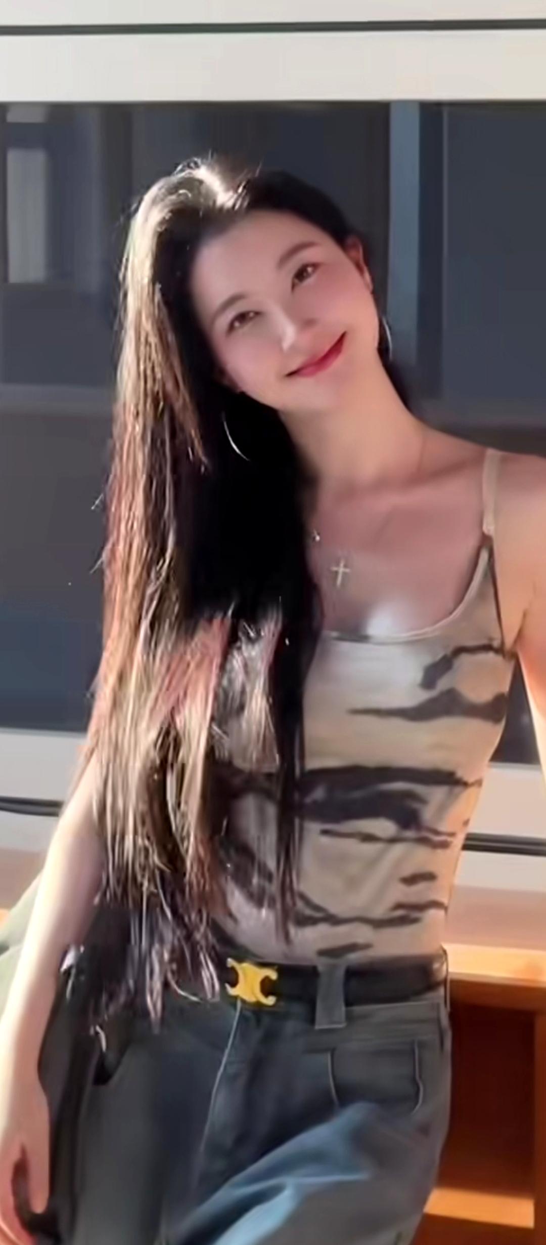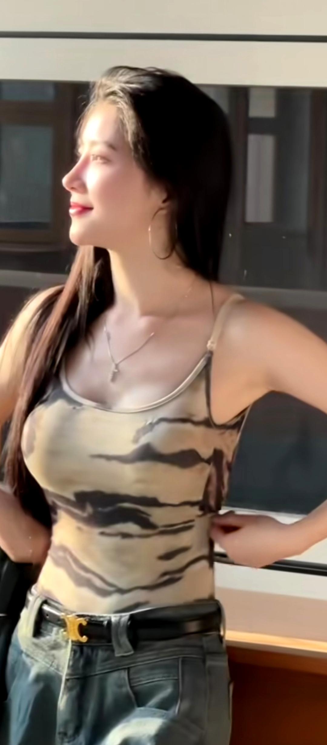 吴越这身打扮简单大方,气质到顶了。虽然也露肉了,然而看着很舒服,很自然。