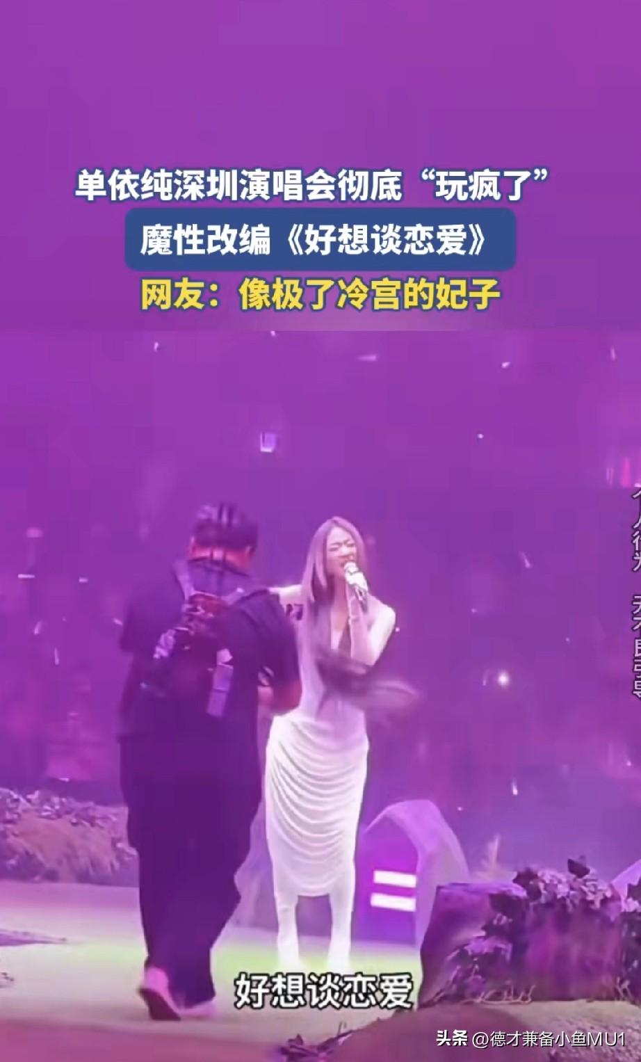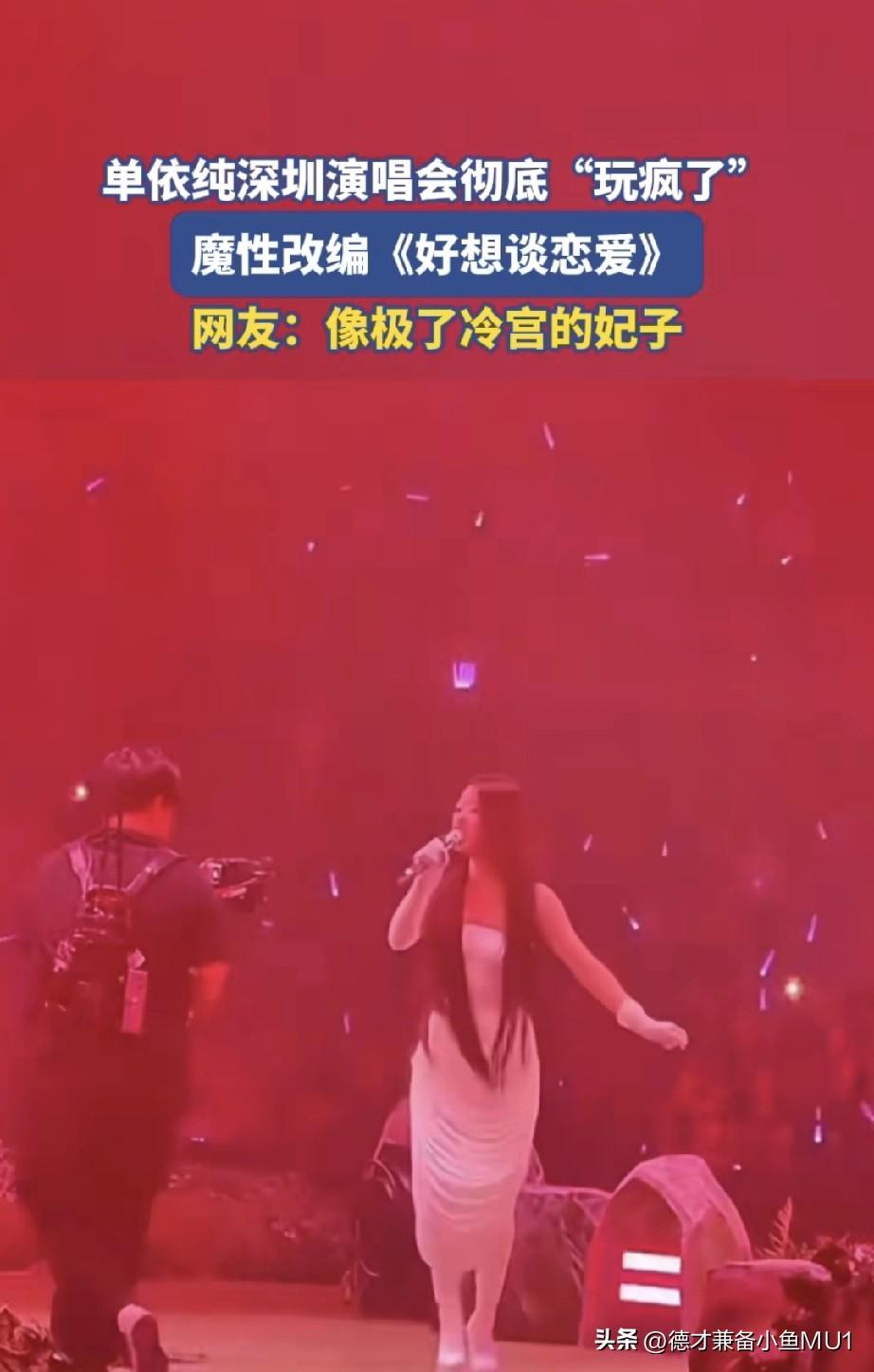单依纯在深圳演唱会上又对《好想谈恋爱》进行魔性改编,那唱法像极了冷宫妃子。这种所谓的改编,原唱和创作人怎么能接受呢? 这下算是明白李荣浩为啥不给她版权了。作为有格局之人,她这种“法师”风格着实让人胆战心惊。 她为何就不能好好唱歌呢?那服装也怪异得很,如今走的到底是什么风格啊,实在欣赏不来。 其实她唱功出色,声音也动听,只要正常演唱就很棒。还是喜欢她唱《永不失联的爱》时的单依纯,现在她仿佛完全变了个人。 可能想明白了黑红也是红,这姑娘心里明白得很,要是不整点博人眼球的事儿,很快就会过气。她这样做不会影响社会风气吗?不会影响大众的价值取向吗?不会给年轻人带来不良影响吗?当下社会已开始滋生厌女情绪,还是封杀算了!她原本前途一片光明,如今却不伦不类,影响观感,污染视线,还扰乱听觉神经。既无美感,又无乐感,更无内涵,还制造出那么多噪音。 对此大家怎么?