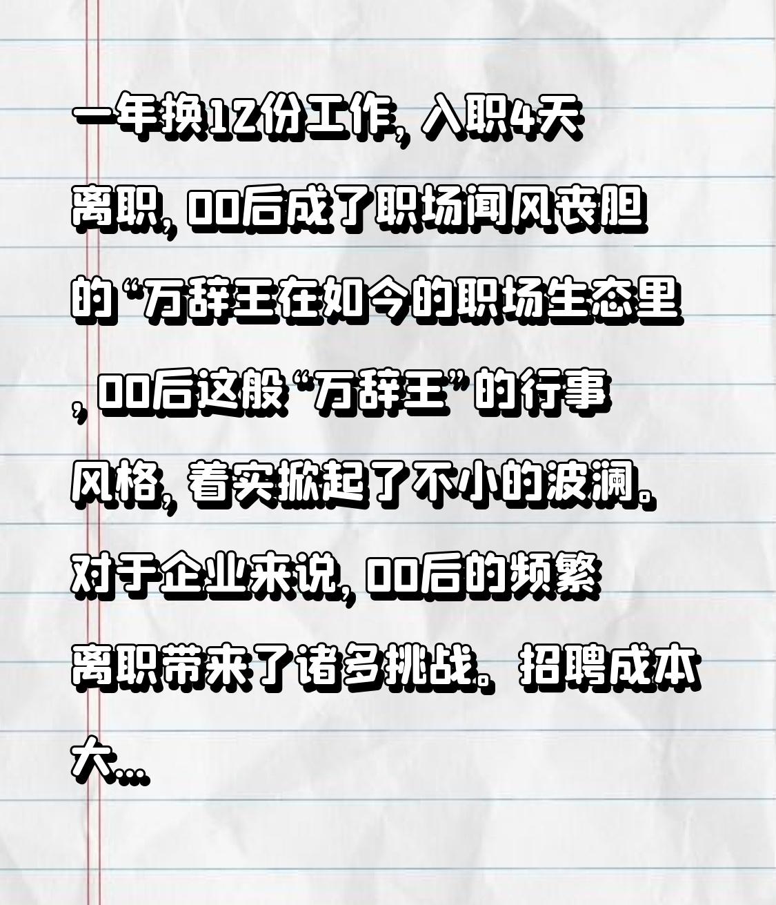 一年换12份工作,入职4天离职,00后成了职场闻风丧胆的“万辞王在如今的职场生态