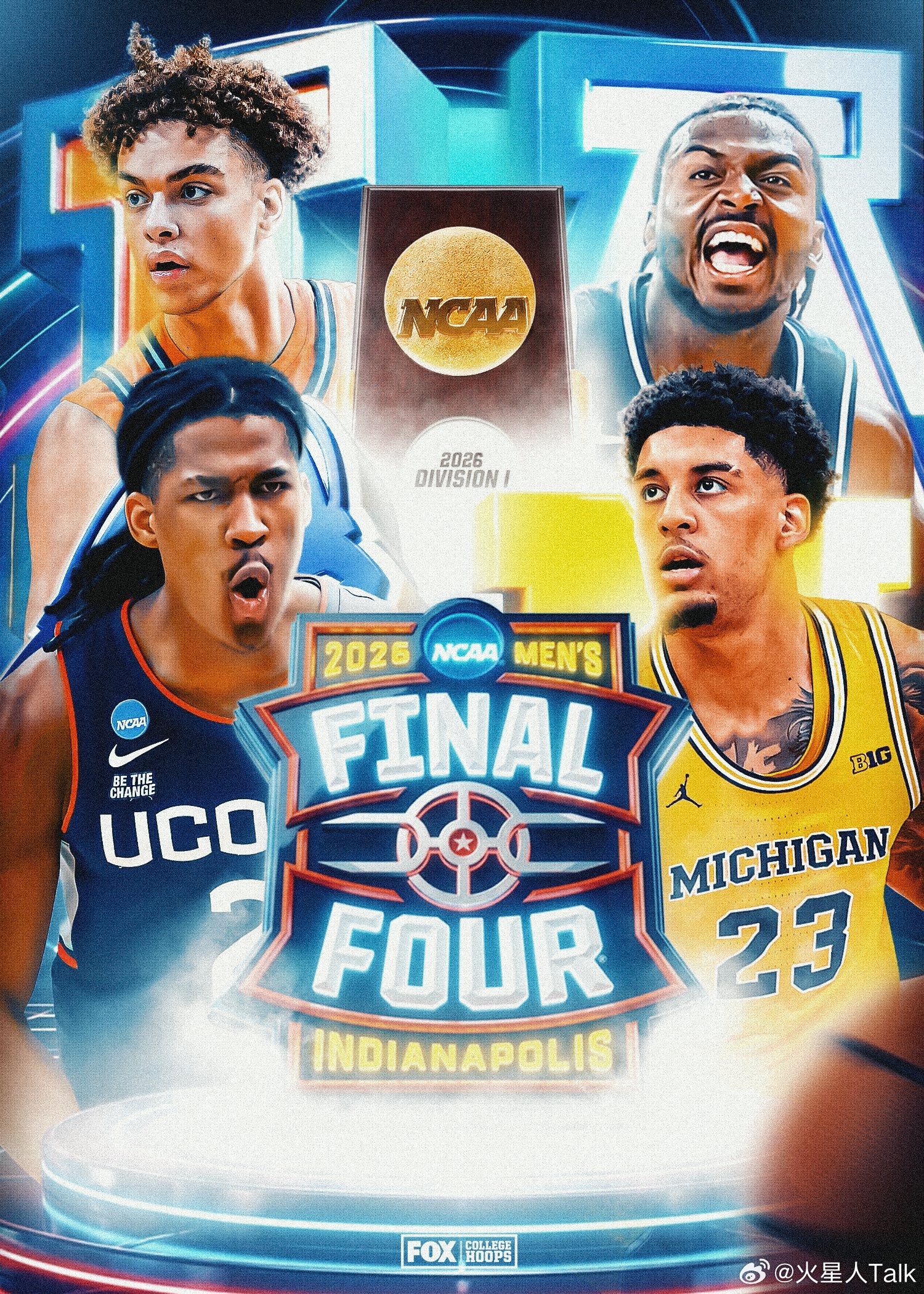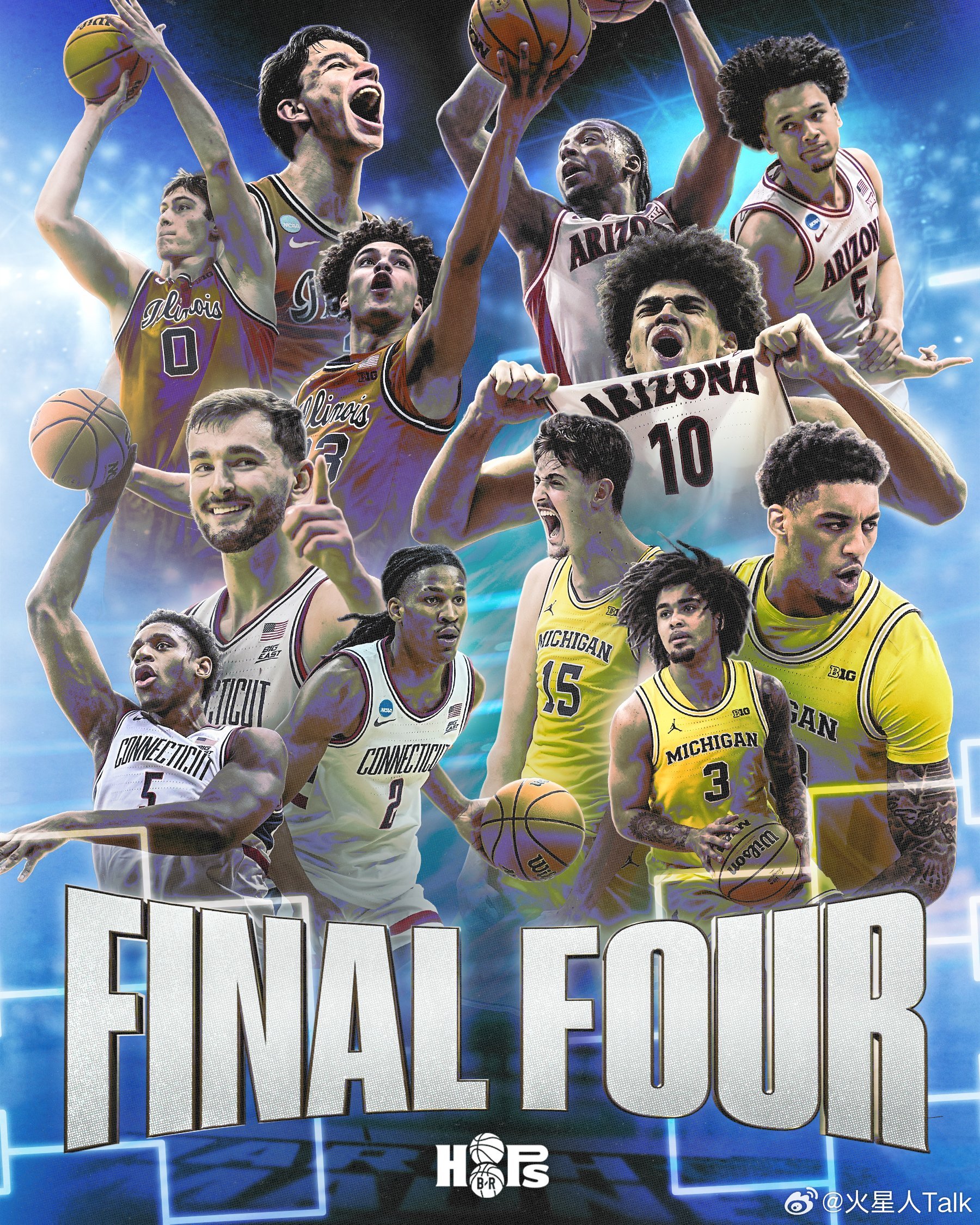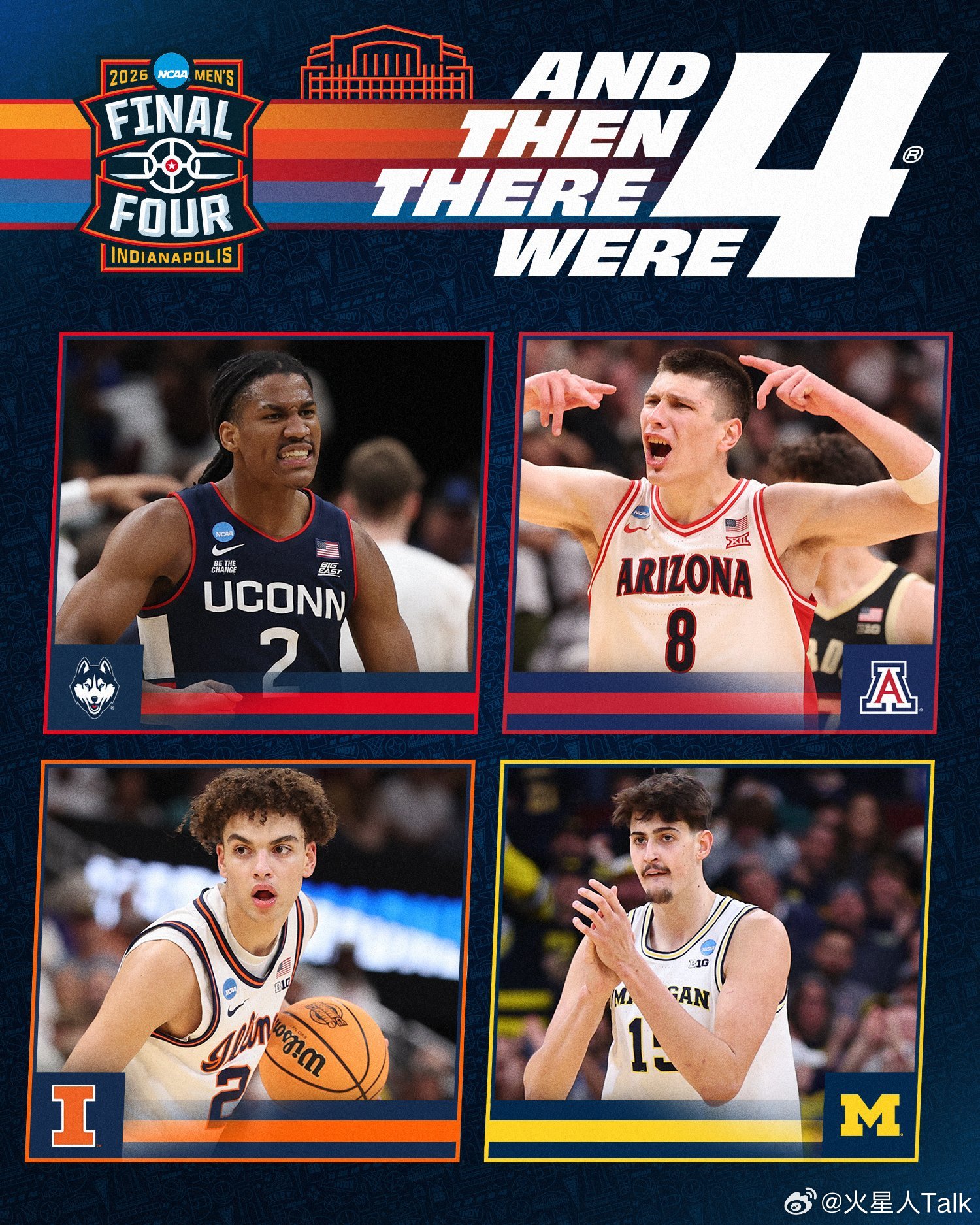 2025-2026赛季NCAA男篮疯狂三月 Final Four最终四强,亚利桑那大学🆚密歇根大学,康涅狄格大学🆚伊利诺伊大学,理论上全国决赛确实有可能成为Big Ten联盟的内战。
