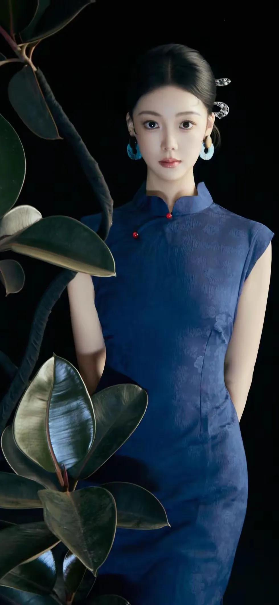 美女壁纸~陈都灵,雾青色纱裙缀满星子碎钻,像把春日林间的月光与晚风都缝进衣袂,一