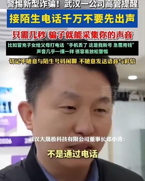 防不胜防!湖北武汉,一科技公司高管在接受采访时提醒,接到陌生电话时不要先出声,不要以为识别出对方是诈骗电话就放下戒备,因为我们的声音只需要几秒钟就可能被对方用AI采集下来,到时候受骗的可能就是家人了。 手机屏幕亮了。一个陌生号码。 你盯着那串数字,心里犯嘀咕——接还是不接?手指头已经划到了接听键。得,接吧。万一是谁有急事呢。 电话那头传来一句:“您好,请问是……” 就这一嗓子,你的声纹已经被打包带走,在一千公里外的服务器里明码标价。 这可不是吓唬人。今年2月,武汉大晟极科技的老总邓小涛站出来说了句大实话:往后接陌生电话,能不出声就别出声。哪怕只说一个"喂",在骗子眼里,那都是白花花的原材料。 你可能会笑——这也太夸张了吧? 现在的AI语音合成早就不是当年那种一听就知道是机器人的水平了。只需短短5至10秒的清晰人声录音,系统便能精准采集、提取你的专属声纹生物特征,完整捕捉并解析声纹核心数据,将个人独有的声纹信息精细拆解、全面收录。 语速、音量、甚至那点改不掉的口音,统统给你复刻出来。不是变声,是把你的声音"DNA重组"了。 换句话说,一个活生生的你,正在电话那头等着骗你爸妈。 这不是危言耸听。 有个老太太接到电话,那头全是孙子的哭腔。喊着说在外面打架流血了,急着要8万块救命。老太太一听,连口音都没差,哪还顾得上怀疑?连夜把压箱底的16万全转了出去。 后来联系上亲孙子才知道,刚才电话里那个"救命"的声音,就是骗子用孩子3秒钟的语音克隆出来的。 还有做生意的老王,接到"老战友"的电话。对方连两人当年合伙干过啥都能对上号,声音语气分毫不差。10分钟,430万没了。 你说这些人不聪明?人家在社会上摸爬滚打多少年,愣是没扛住。为啥?因为骗子的剧本根本不跟你讲道理,就一件事——制造紧急。医院、派出所、看守所,理由换来换去,就为让你脑子短路。人在那种情绪底下,理智?早被亲情冲得一干二净了。 说白了,骗子盯的不是你口袋里那点钱,他们打的是你家里老人那张牌。你的发小可能还会核实一下,你的同事可能还会犹豫几秒。但当亲儿子、亲孙子在电话里喊"爸救我"的时候,谁能做到不动声色? 这不是骗术高明,这是专门往人心窝子上捅。 邓小涛给了一句话:接到陌生来电不必急于开口,先保持安静耐心倾听。让对方率先自报来意、说明事由,既能快速摸清对方身份与意图,也能规避诈骗、骚扰等风险,从容掌握通话主动权。 哪怕非开口不可,也只回一个模糊的"嗯",别给人家凑整句。你的声音素材越碎,AI越难拼出完整的克隆人。 尤为关键的是:通话中一旦提及钱财,无论对方哭诉得多凄惨、声音多么酷似你的父母,都不要心软犹豫,立刻挂断电话,守住底线谨防电信诈骗。然后翻出通讯录,从里面找到号码重新打过去。别回拨,因为显号软件想改成啥号就能改成啥号,但你手动存的真号码,它改不了。 回头也跟家里老人多念叨念叨。他们这辈人哪懂啥AI模型,一个哭声就直接把底露个透。提醒大家:但凡来电索要钱财,立刻先挂断电话。不要慌张转账,不管对方是谁、理由多急,都不要当场做决定,务必多方核实清楚真伪,谨防电信诈骗。 技术这东西,发展起来是快。AI给我们的生活带来了便利,也顺手给骗子递了一把更锋利的刀。指望技术自律那是做梦,守住自己那颗警惕心,才是最后的护身符。 下次手机再响,别急着开口。先等三秒。这三秒钟,可能就是你保住一辈子存款的那根稻草。 毕竟,你那一句"喂",在骗子眼里,可比你想象的值钱多了。 参考信息:光明网.(2026-03-29).“只需要你5秒钟声音”,一科技公司紧急提醒:接陌生电话千万不要先出声!.