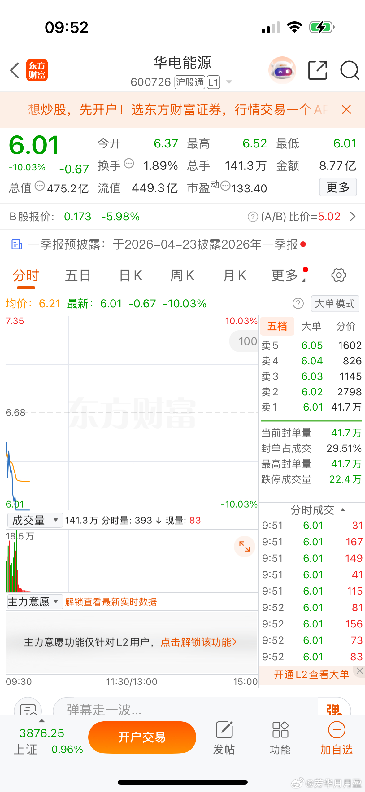 电力大调整,华电辽能跌停,华电能源和豫能控股的表现都比较弱,说明这里高位情绪还是很弱的!
