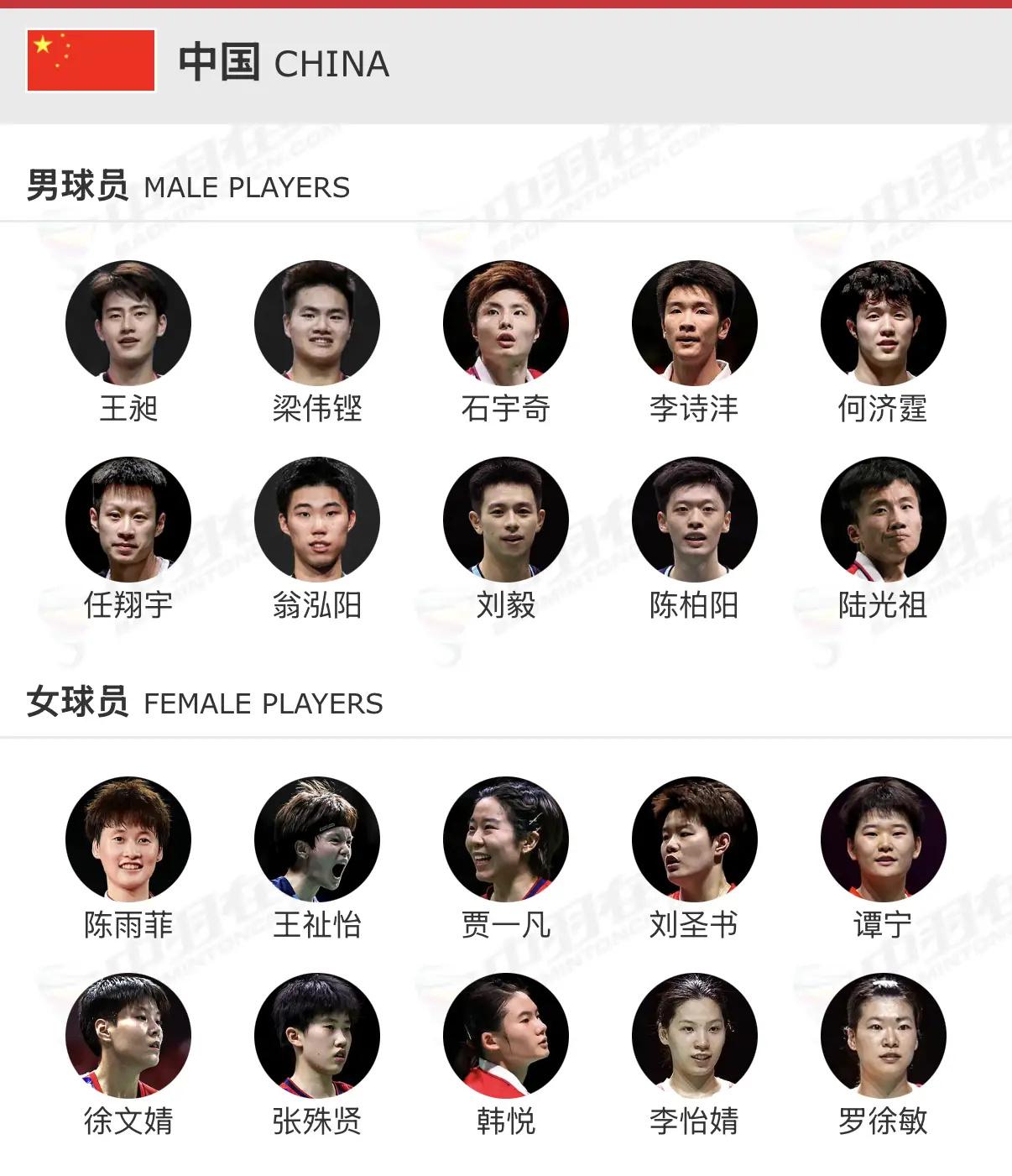 2026年汤尤杯国羽参赛名单公布: 汤姆斯杯(男团)阵容:新老结合,剑指卫冕 男单(4 人):石宇奇、李诗沣、翁泓阳、陆光祖 男双(6 人):梁伟铿/王昶、陈柏阳/刘毅、何济霆/任翔宇 尤伯杯(女团)阵容:陈雨菲领衔,贾一凡携新搭档出战 女单(4 人):陈雨菲、王祉怡、韩悦、徐文婧 女双(6 人):刘圣书/谭宁、贾一凡/张殊贤、李怡婧/罗徐敏