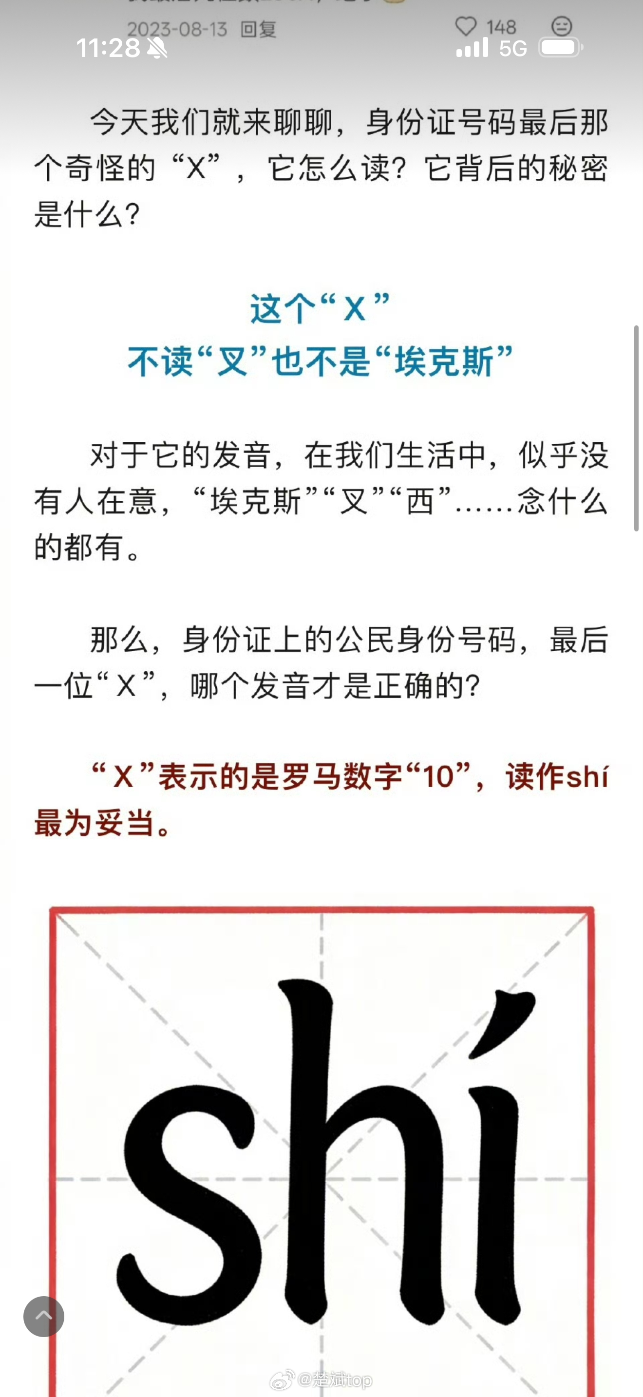 你可以知道这个X代表的是罗马数字10,但你报身份证号的时候我劝你还是读叉或者埃克斯,通俗易懂大家也都心领神会,你要非得念个10出来,徒增解释成本而已,当然这样也可以显得你很有文化身份证号的X到底咋读