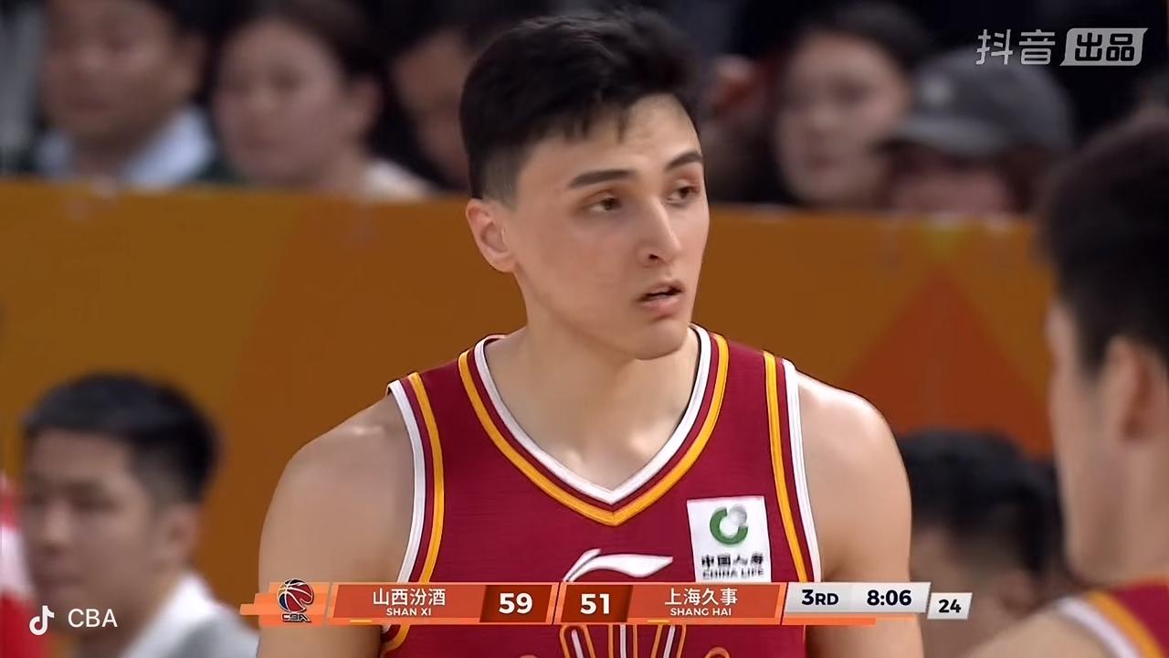 这个21岁的山西汾酒男篮小伙子不知道累吗? 在昨天晚上山西汾酒男篮主场迎战CBA联赛排名第一的上海久事男篮的比赛中,能够看到山西汾酒男篮这个年轻的小伙子满场不停的奔跑,防守,拼抢篮板,真的是太棒了。 这个小伙子首发出场,打了26分钟,4投2中,三分球3中2,得到了6分4篮板。 有谁还记得,在全明星三分球大赛中,他进入决赛,并且和后来的冠军胡明轩一样得到了22分,只不过在加赛中输了! 其实在比赛中,如果他有更多的三分球出手机会,那么山西汾酒男篮不一定会输得! 这个球员他是谁呢?他就是目前被称为CBA最帅的新疆儿子娃娃于米提!