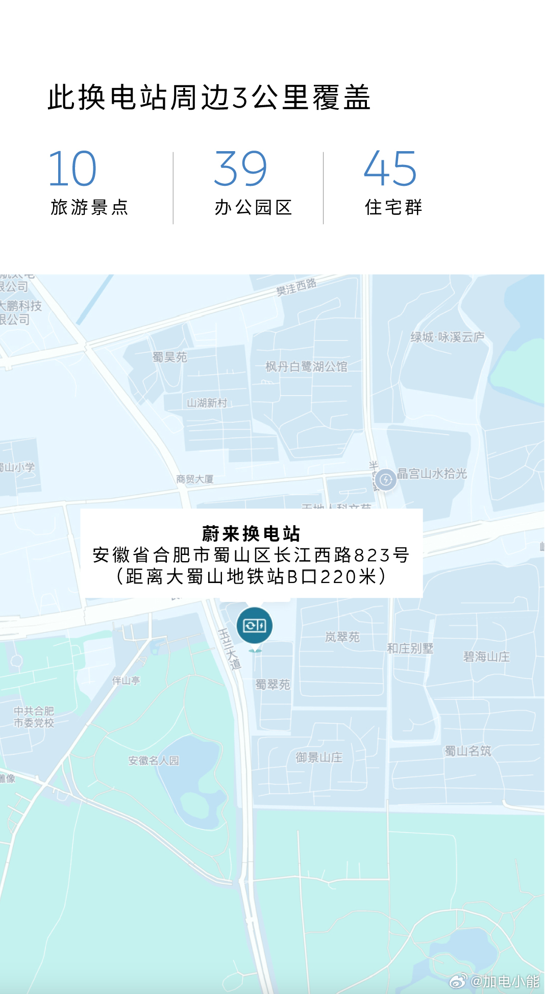 换电站是电动车的加油站蔚来换电站 | 合肥长江西路大蜀山 上线周边3公里覆盖10大核心商圈、39大办公园区、45大住宅群截至3月28日,蔚来已在安徽省布局201座换电站,在全国布局3770座换电站蔚来换电去哪都方便