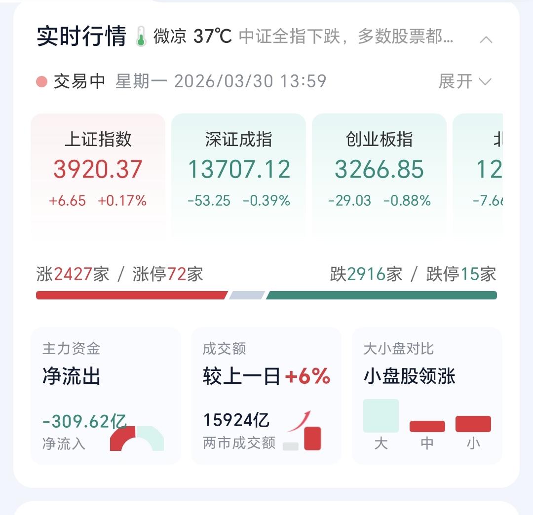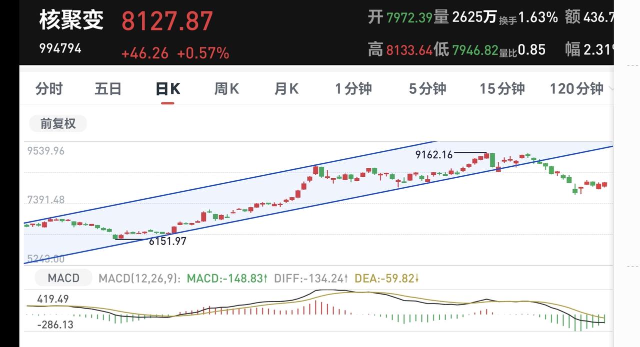 基金:反弹大概率在什么时候结束 日本和韩国市场今天下跌,日本下跌了3.19%,韩国下跌了2.86%,下跌幅度都比较大。 香港市场今天也是下跌,恒生指数下跌了1.20%,国企指数下跌了1.07%,恒生科技指数下跌了2.15%,下跌幅度也都不小。 现在指数还是小幅度震荡当中,三大指数还是涨跌不一,上证指数小涨,创业板指和深成指小跌,两市累计成交15924亿,相比于昨天同期放量了6%,市场上涨2427家,下跌2916家,上涨家数少于下跌家数,涨停72家,跌停15家,主力资金净流出309亿。 看下面的截图4,这是主力资金动向图,在指数大幅度上扬的过程当中,主力资金并没有大幅度进场,只是稍微缩小了净流出的幅度。 看下面的截图5,这是成交量的示意图,今天成交量的放大主要是在上午完成的,下午开盘以后基本上处于缩量的状态,在盘中相对高位的地方持续缩量,并不是一个好的现象。 整个市场上涨幅度最大的三个板块是:商业航天板块,半导体材料设备板块,黄金板块,下跌幅度最大的三个板块是:光伏板块,电力板块,恒生科技板块。 持有基金现在盘中估值亏损了2053元,盈利金额最大的三个板块是:白酒板块,军工板块,大消费板块,亏损金额最大的三个板块是:证券板块,创业板,芯片半导体板块。 可控核聚变板块处于日线级别上涨趋势破位中,前段时间就已经下跌跌破了上涨通道的下轨线,最近都是在上涨通道的下方震荡,今天的上涨并没有能够改变日线级别的下跌趋势,短线持有的人继续注意风险。 可控核聚变板块周线级别处于上涨通道中,距离上涨通道的下轨线不远,近期观察会不会有效破位这个上涨通道的下轨线,如果实现了有效破位,长线持有的人也需要注意风险。 电网设备板块前段时间已经下跌跌破了上涨通道的下轨线,现在是处于有效破位当中,短线的人在日线级别上涨趋势被修复之前,都需要保持谨慎的态度。 电网设备板块周线级别处于上涨通道中,距离上涨通道的下轨线不远,近期观察会不会有效破位这个上涨通道的下轨线,如果有效跌破了周线级别上涨通道的下轨线,长线持有的人也需要注意风险。 人工智能板块日线级别处于下跌通道中,今天的上涨并没有能够突破日线级别下跌通道的上轨线,今天的上涨也没有能够改变日线级别的下跌趋势,短线持有的人需要注意风险。 人工智能板块周线级别也处于下跌通道中,今天的上涨也没有能够改变周线级别的下跌趋势,长线持有的人继续注意风险。 5G通信板块日线级别处于上涨通道中,现在的位置就是在上涨通道的下轨线附近,近期观察会不会有效破位这个上涨通道的下轨线,如果有效破位了日线级别上涨通道的下轨线,短线的人需要注意风险。 5G通信板块周线级别也处于上涨通道中,现在的位置也是在上涨通道的下轨线附近,近期观察会不会有效破位周线级别上涨通道的下轨线,如果有效破位了这条下轨线,长线持有的人也需要注意风险。 今天下午基本上就是这样的小幅度震荡,收盘的时候大涨大跌的可能性都不大,现在是不是还处于反弹过程当中还不能确认,因为,从反弹空间上来讲,已经连续两个交易日没能创反弹新高,如果明天还不能创反弹937点新高,反弹就已经结束了,但从反弹时间上来讲还不够,反弹时间大概率应该会到明天的盘中,到时候观看突破3937点的情况,特别是能不能回补3955点的缺口,如果能够回补3955点的缺口,反弹就还会有延续,如果不能突破3955点,反弹结束的时间就是在明天。 今天究竟应该怎么办?我会在评论区留言。