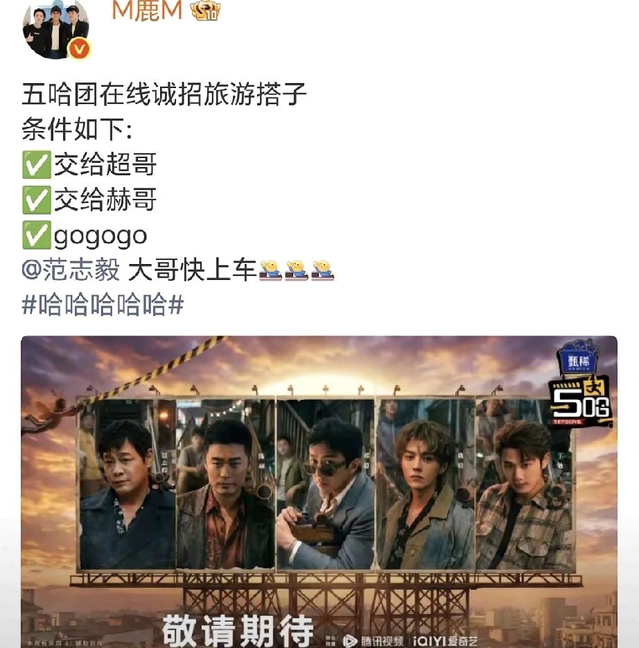 鹿晗官宣回归!五哈铁三角合体,全网沸腾 3月30日,鹿晗突然官宣回归《五哈》第六季,与邓超、陈赫重组综艺铁三角,瞬间引爆热搜。此前他因个人安排缺席第五季,此番回归堪称最大惊喜。 鹿晗发文调侃行程交给邓超陈赫,喊范志毅快上车,状态轻松愉悦。从演唱会热度飙升到综艺归队,鹿晗再度强势回归大众视野。 这对从跑男延续至今的黄金搭档重聚,情怀与笑点拉满,网友直呼下饭综艺终于圆满,期待值直接拉满。 鹿晗报喜 鹿晗跑男十周年