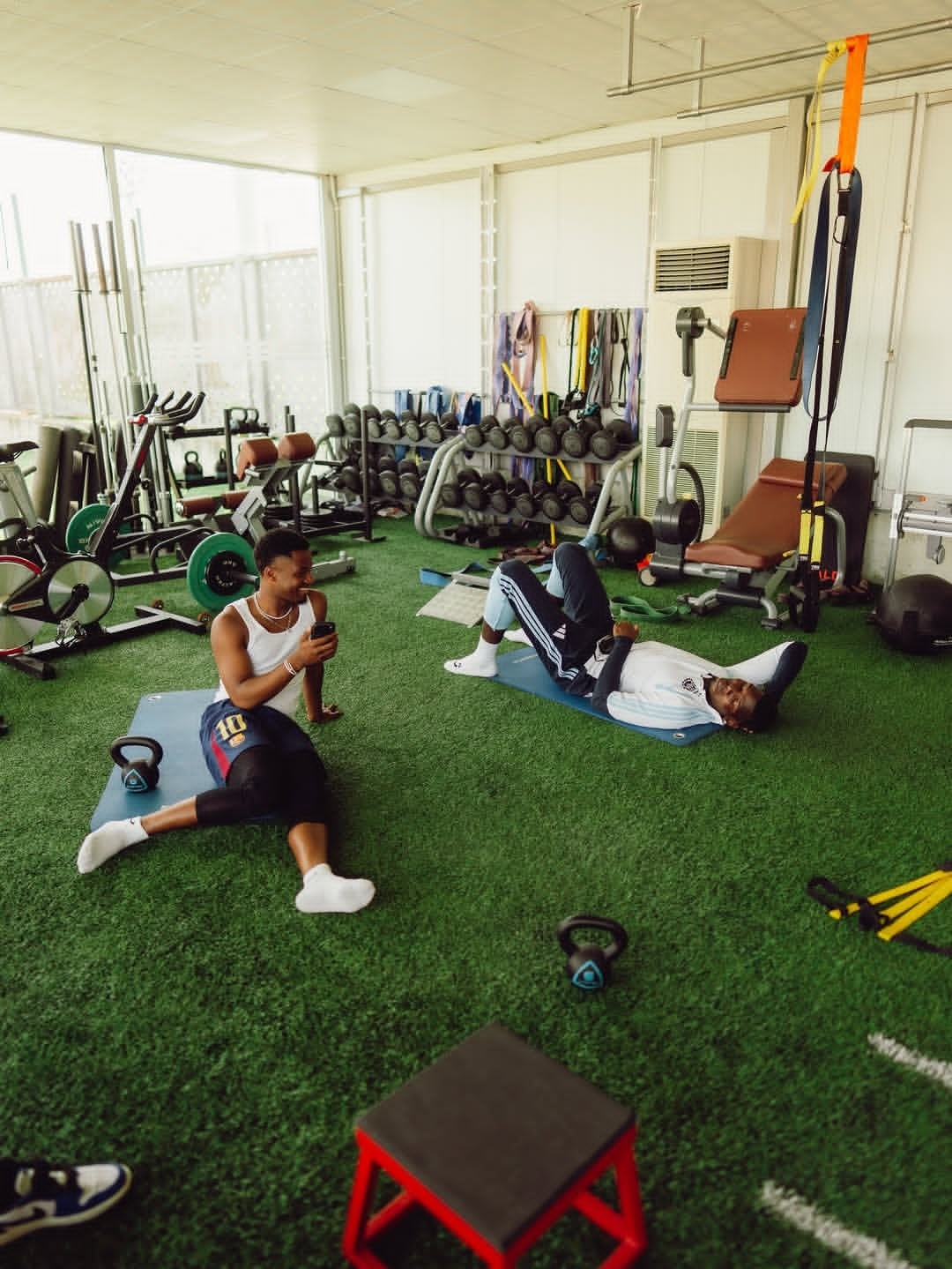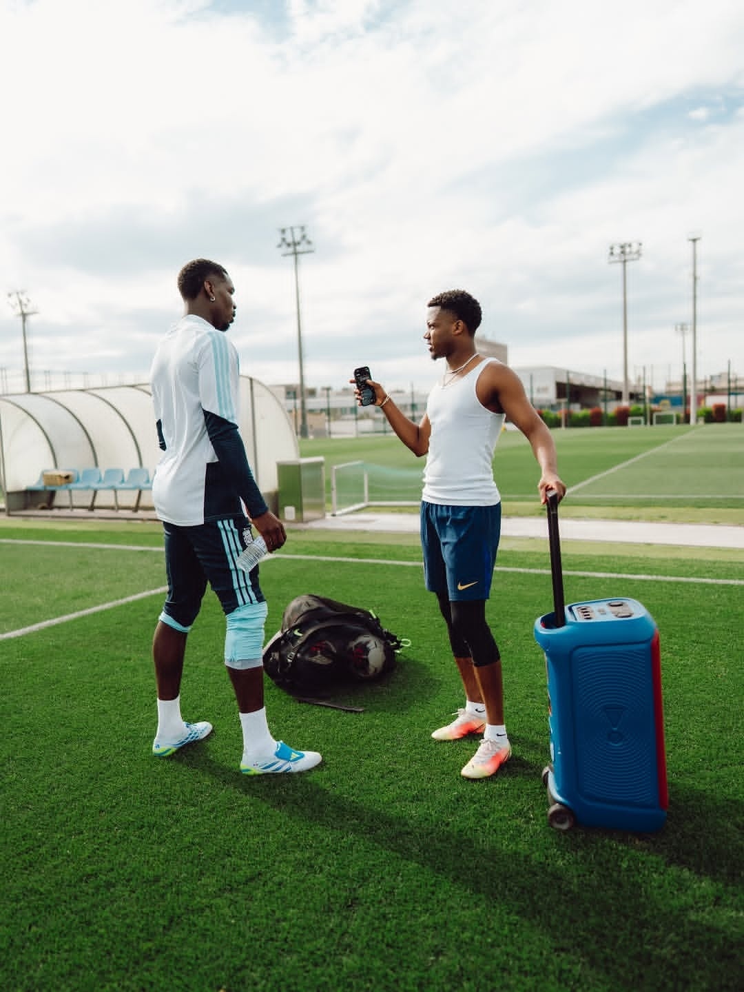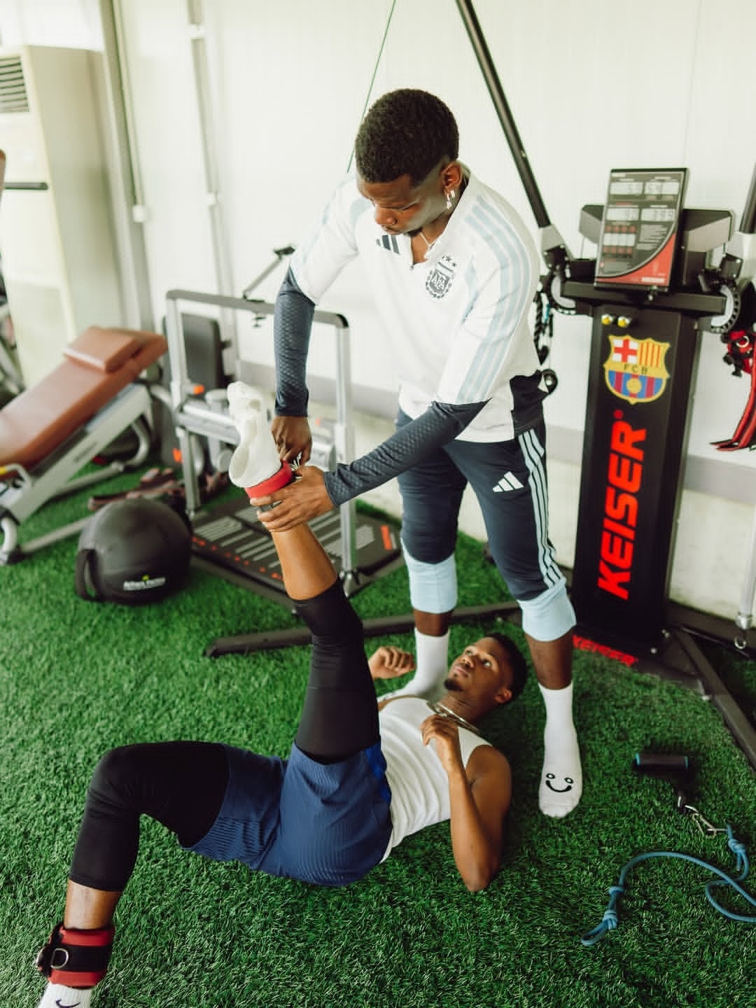 博格巴和法蒂在巴塞罗那训练。巴萨至死不渝红蓝魂