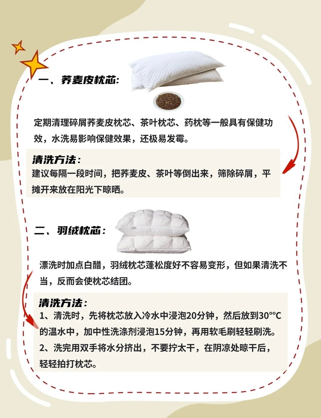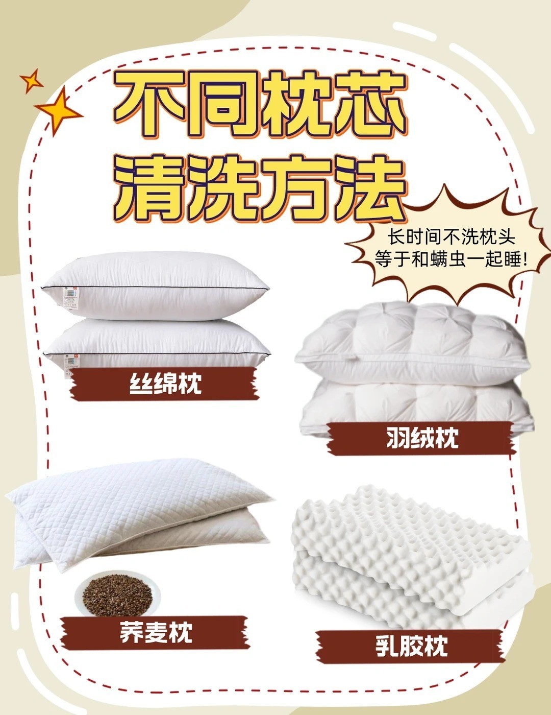 床上最脏的一个地方很多人从没洗过 我们洗床单被套时,常常漏掉枕芯这个藏污大户!时间久了螨虫、汗渍、头皮屑全闷在里面,比床单脏多了。下面为大家分享不同材质枕芯的清洗技巧,别再瞎洗了