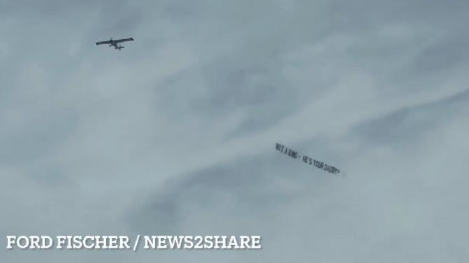 他不是国王,他是恁爹!原来美式的语言攻击类型和我们也差不多嘛[捂脸] 近日,美国的No Kings运动在美国各地开展的如火如荼,但在洛杉矶却上演非常搞笑的一幕:一位特朗普的支持者,驾机飞过一群高呼“不要国王”游行人士的上空,机上悬挂的标语写着:“他不是国王——他是你们的爹!” 哈哈,看到不管是支持还是反对都要有实力啊,人家有本事搞来飞机,从高空碾压,还更吸引眼球,就问地面上的人群该如何应对?