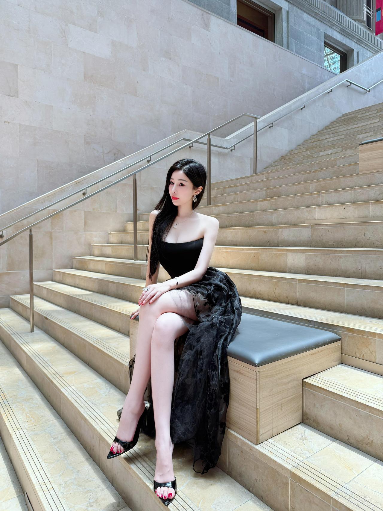 黑纱轻垂,光影里藏着不费力的优雅,一步一曳间,都是独属于我的温柔锋芒。