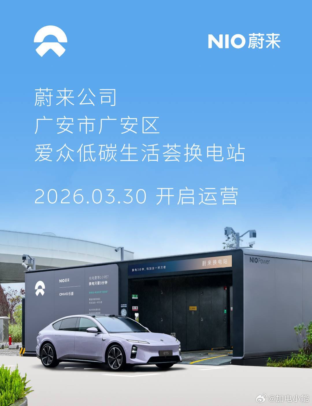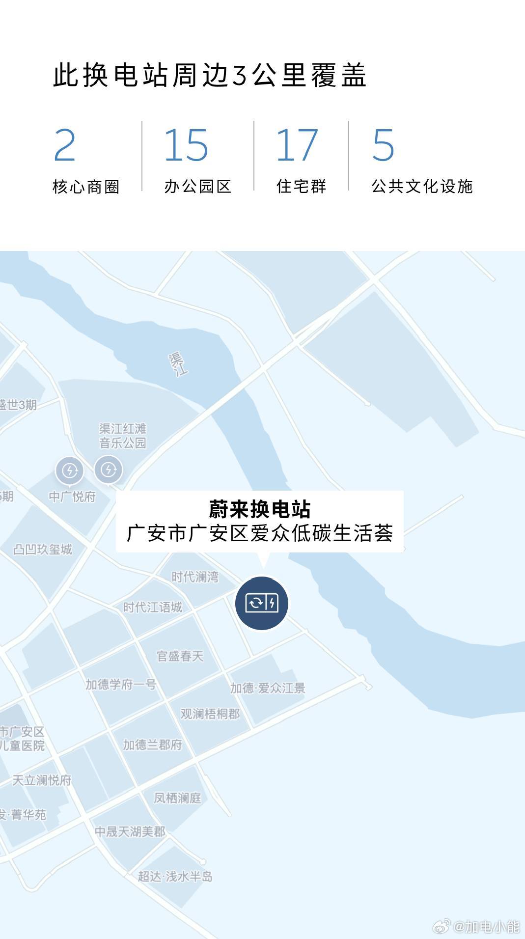 蔚来换电站 | 广安市广安区爱众低碳生活荟 上线周边3公里覆盖2大核心商圈、15大办公园区、17大住宅群、5大公共文化设施截至3月30日,蔚来已在四川省布局160座换电站,在全国布局3773座换电站蔚来换电去哪都方便