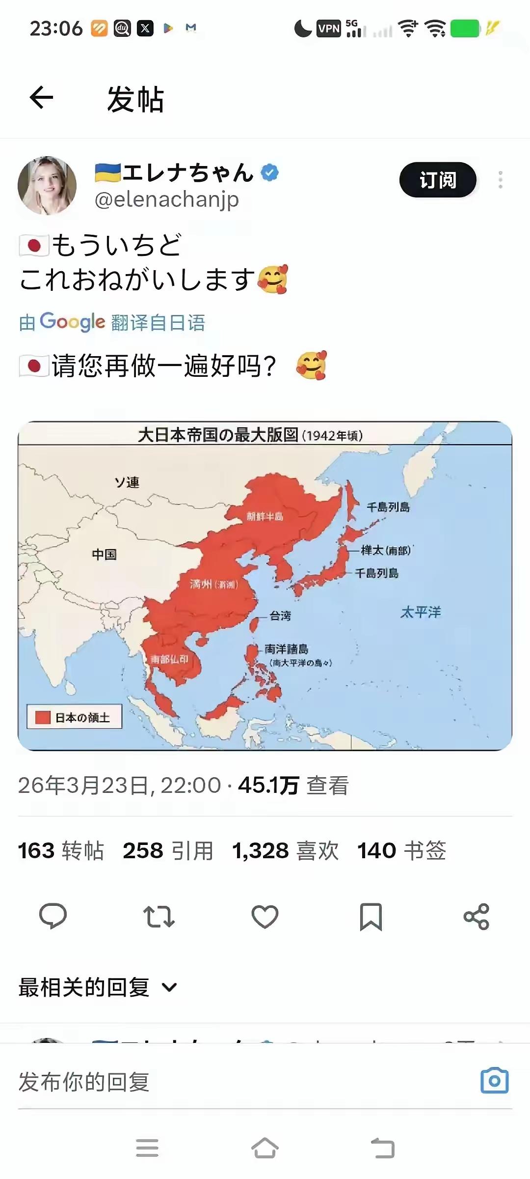 这位乌克兰女网友的发言,简直是把“无知”和“恶毒”写在了脸上!自己国家还在战火里挣扎,转头就给日本军国主义招魂,呼吁日本人“再来一回东亚圣战”。 先把话撂这:这张所谓“大日本帝国最大版图”,从来不是什么荣光,而是沾满数千万东亚人民鲜血的罪证!从南京大屠杀到东南亚殖民掠夺,从朝鲜半岛的血泪到中国大地的焦土,日本军国主义给亚洲带来的是家破人亡、文明断裂,是刻在几代人骨血里的仇恨。 乌克兰网友竟然给日本军国主义招魂,企图把亚洲再次搞乱,是对所有二战死难者的公然亵渎,是对人类良知的彻底践踏! 更可笑的是,她一边喊着反侵略,一边给另一场侵略战争洗地,这逻辑简直滑天下之大稽。乌克兰人民正在承受战争之苦,本该最懂和平的珍贵,结果有人却把他国的苦难当成情绪宣泄的工具,把军国主义的亡灵当偶像膜拜——这哪里是发牢骚?这是赤裸裸的是非不分、善恶颠倒! 历史从来不是任人打扮的小姑娘,侵略永远洗不白。这种翻案鬼话,本质是借极端情绪煽动对立,我们必须对这种言论狠狠打击:谁想把战争的噩梦再降临亚洲,谁就是全亚洲人民的公敌!