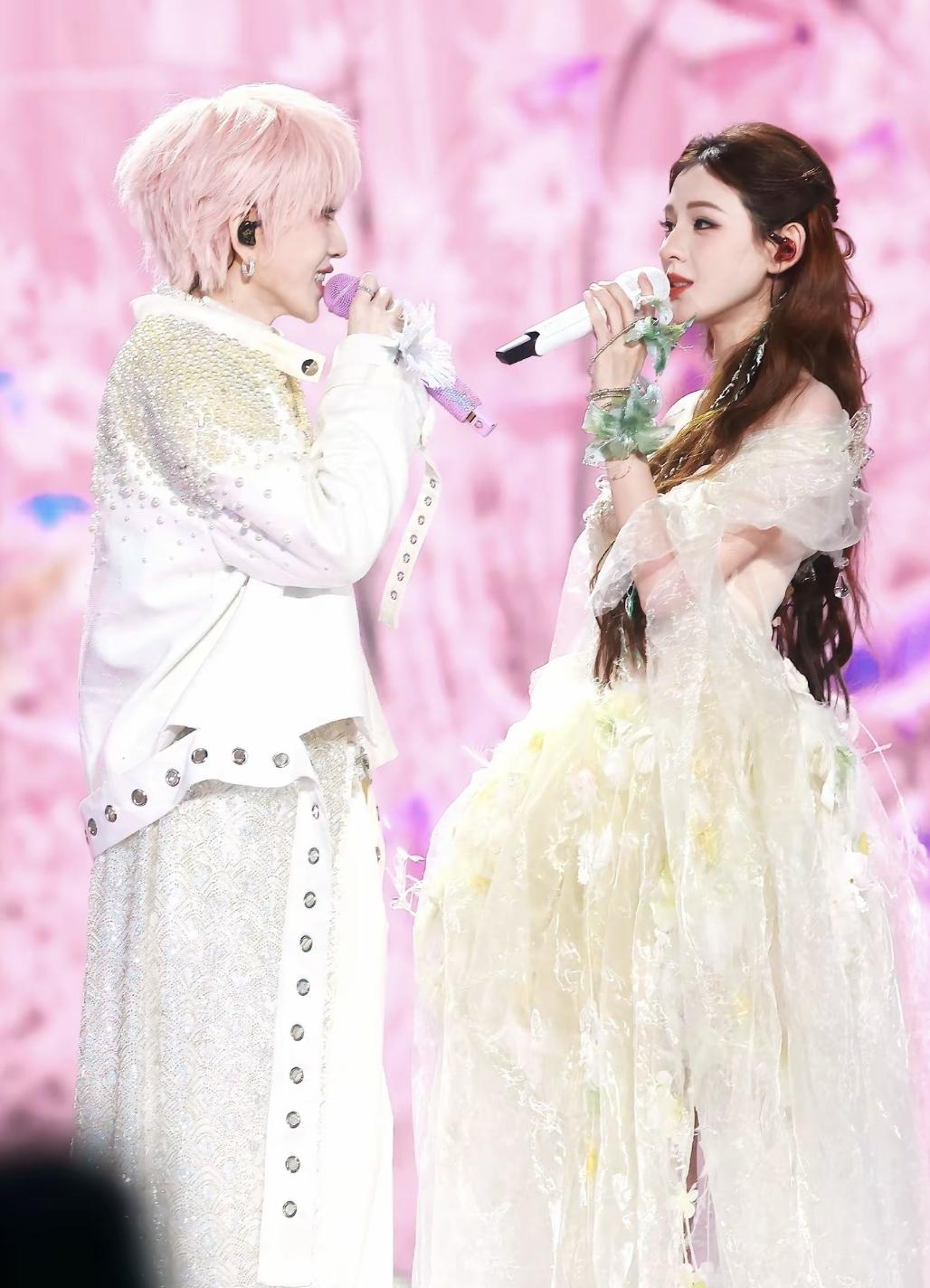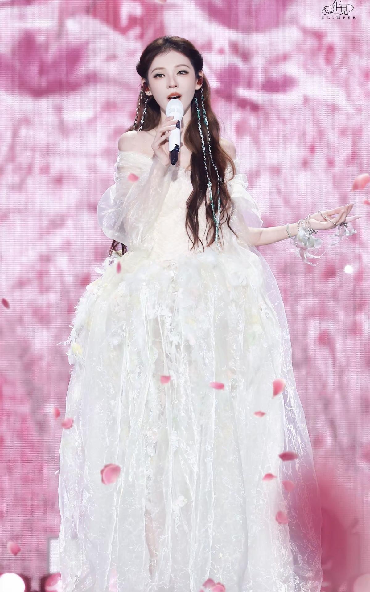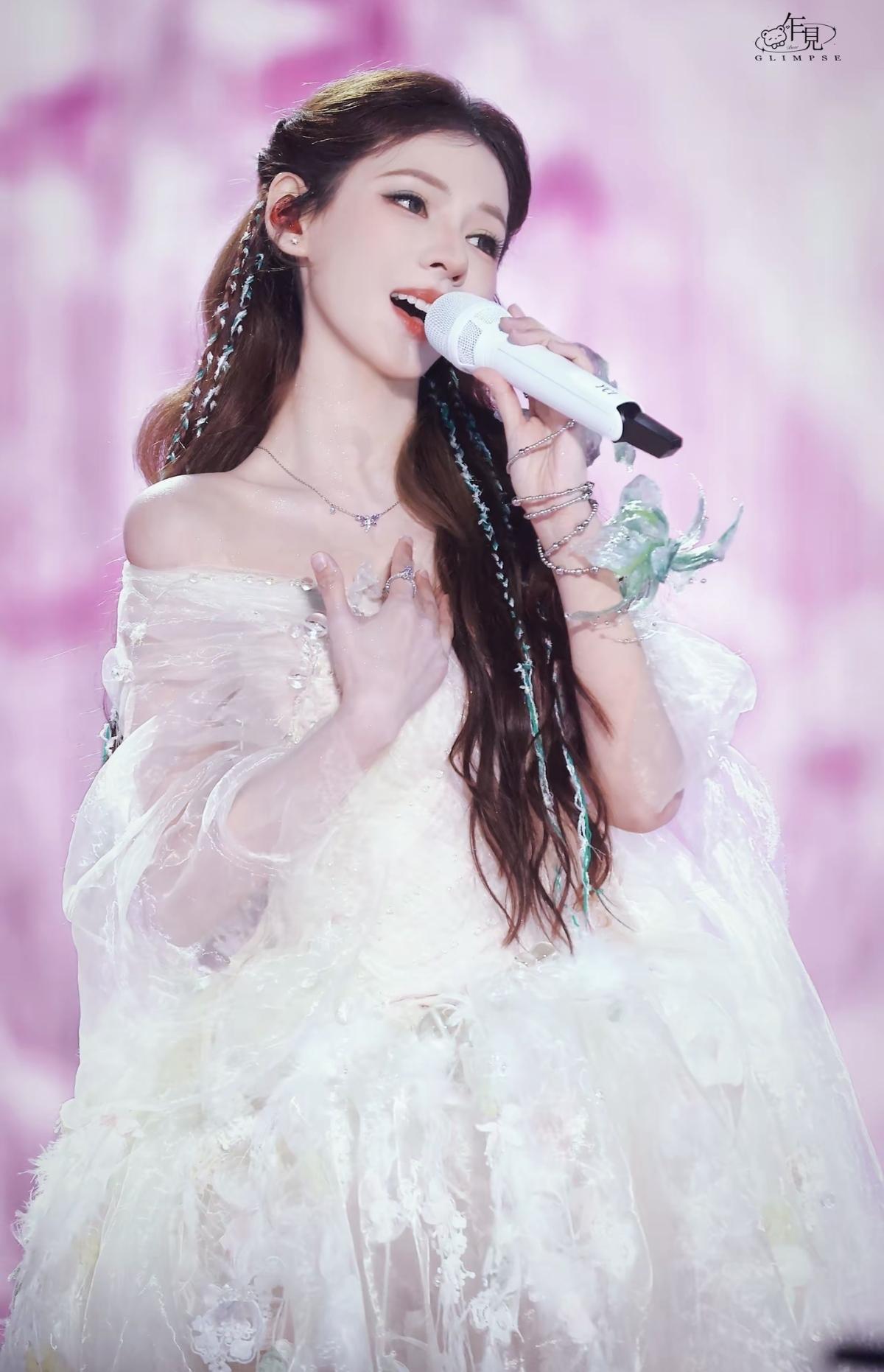 粉紫灯光下的张予曦,是自带柔光滤镜的舞台精灵[比心]露肩白纱裙勾勒出优雅肩线,手持麦克风的模样又甜又飒[赞]每一个瞬间都美得让人移不开眼,这颜值真的太能打了[给力]娱乐明星