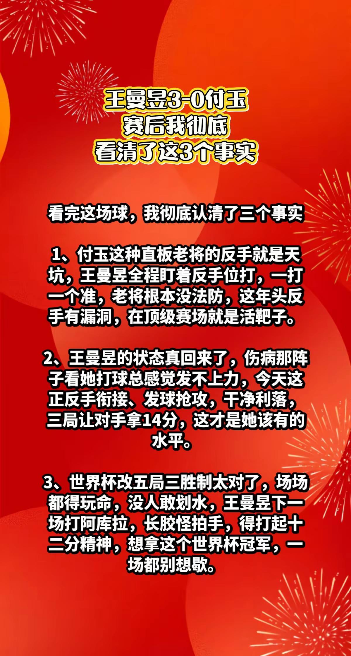 王曼昱3-0付玉,赛后我看清了3件事。王曼昱 澳门世界杯