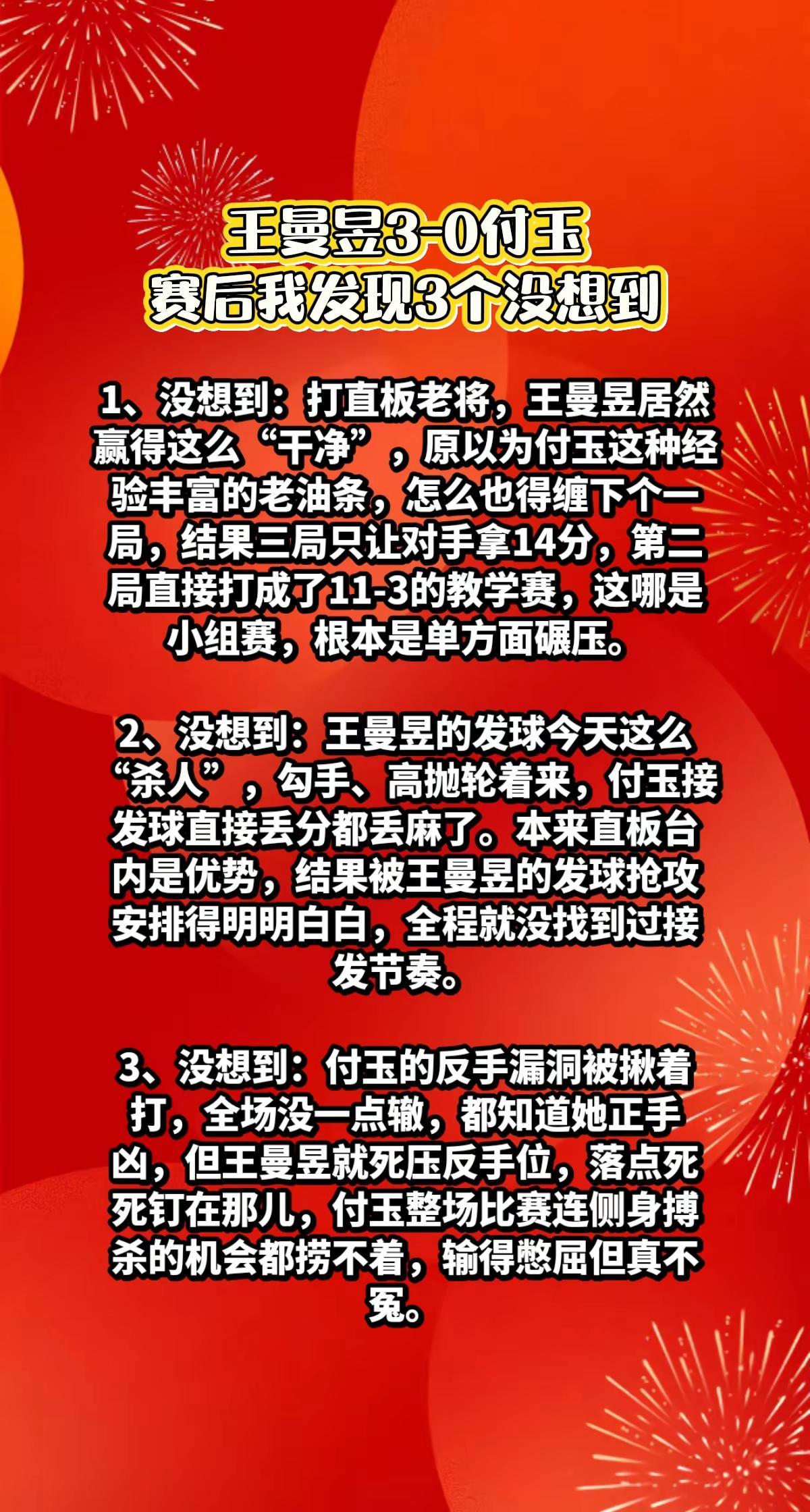 王曼昱3-0付玉,赛后我发现3个没想到。