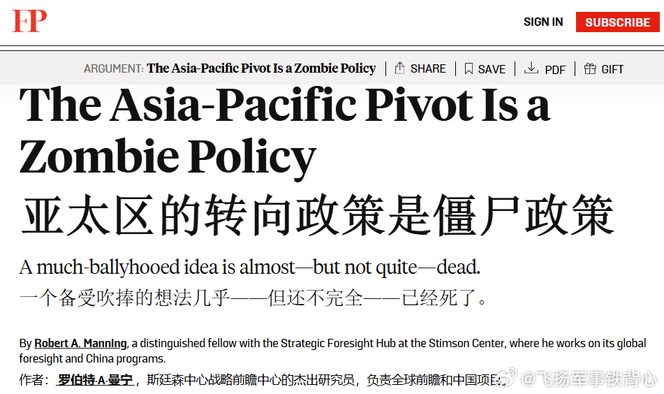 FP:美国所谓的“重返亚太”已成为一项“僵尸政策”——理论上已经死了,但没有真正消亡,它还在像僵尸一样蹦跶。