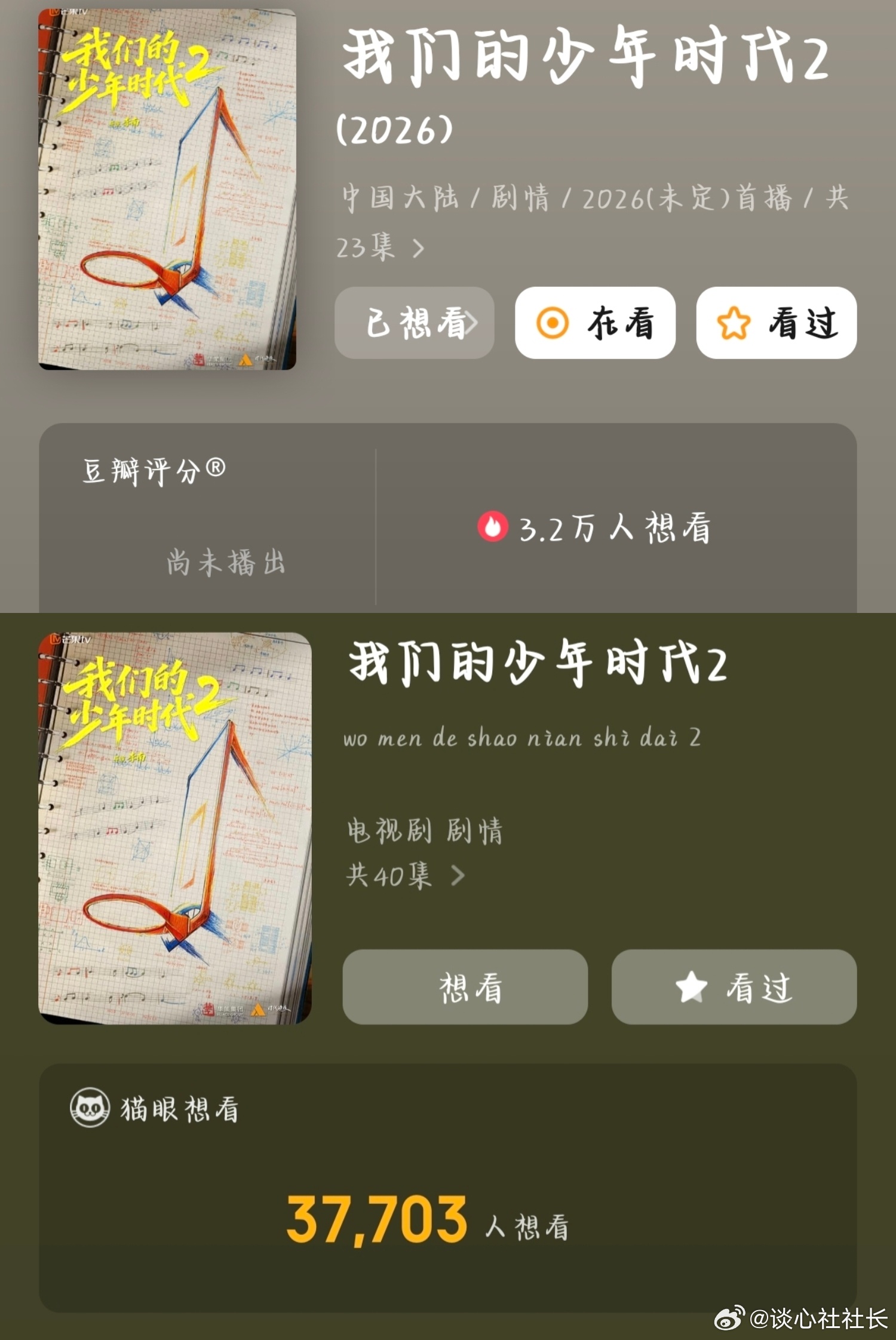 【我们的少年时代2想看人数超三万】猫眼3.7万+想看,豆瓣3.2万+想看!《我们的少年时代2》还没播就已经把期待值拉满了🏀
