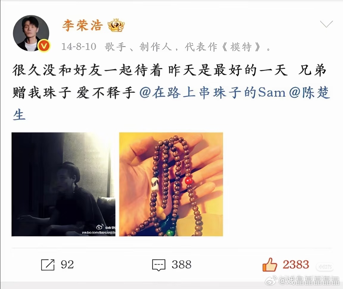 陈楚生和李荣浩是好朋友,生哥送给儿子Demo那首歌的编曲是李荣浩,有人说李荣浩以为歌手节目组是拿李白给生哥改编才同意的。