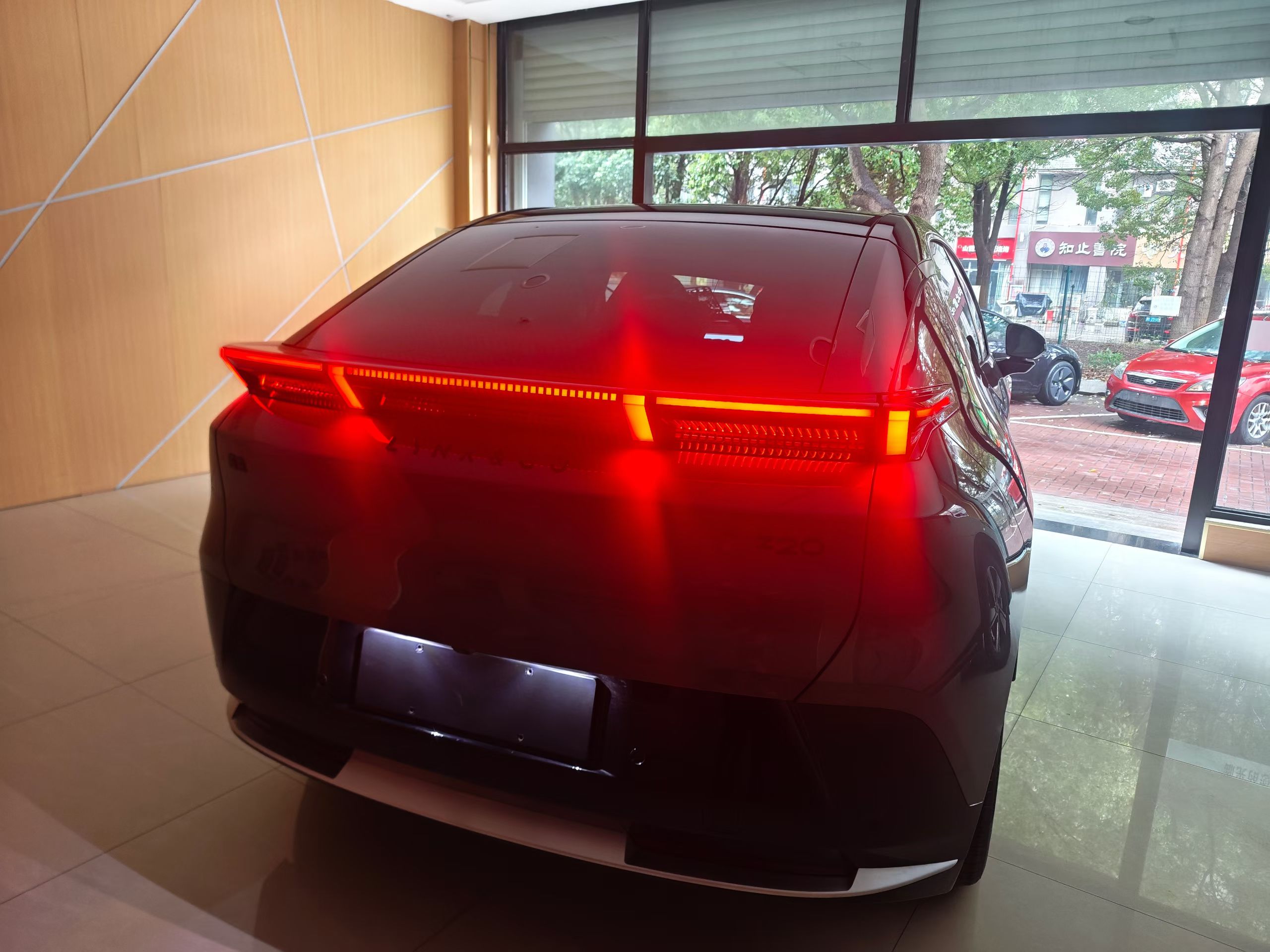 其实这款领克Z20黑色的车顶还是挺漂亮的,第一眼看上去像邪恶的鼠标,但是看着看着也就习惯了,半SUV半轿跑型的设计还是挺犀利的。最喜欢的还是这款汽车的尾部,层次鲜明,而且点亮后特亮。