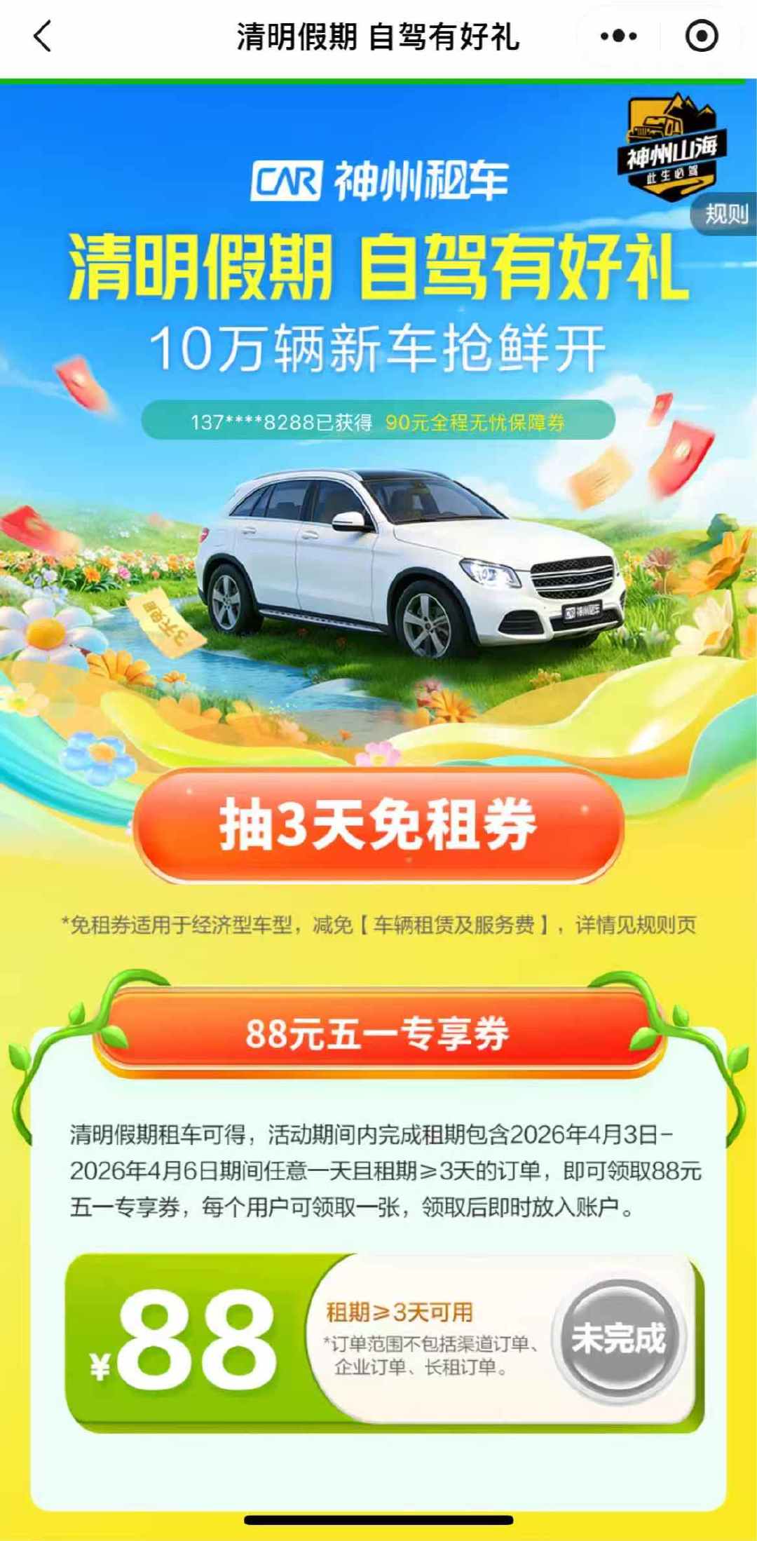 当我决定假期不再待在家神州山海 此生必驾神州春游季神州租车告别宅家,奔赴山海,把春天装进车窗里🌿,正赶上神州租车春游季送福利,清明假期租车,可得88元五一专享券,小长假打算出游的千万别错过!