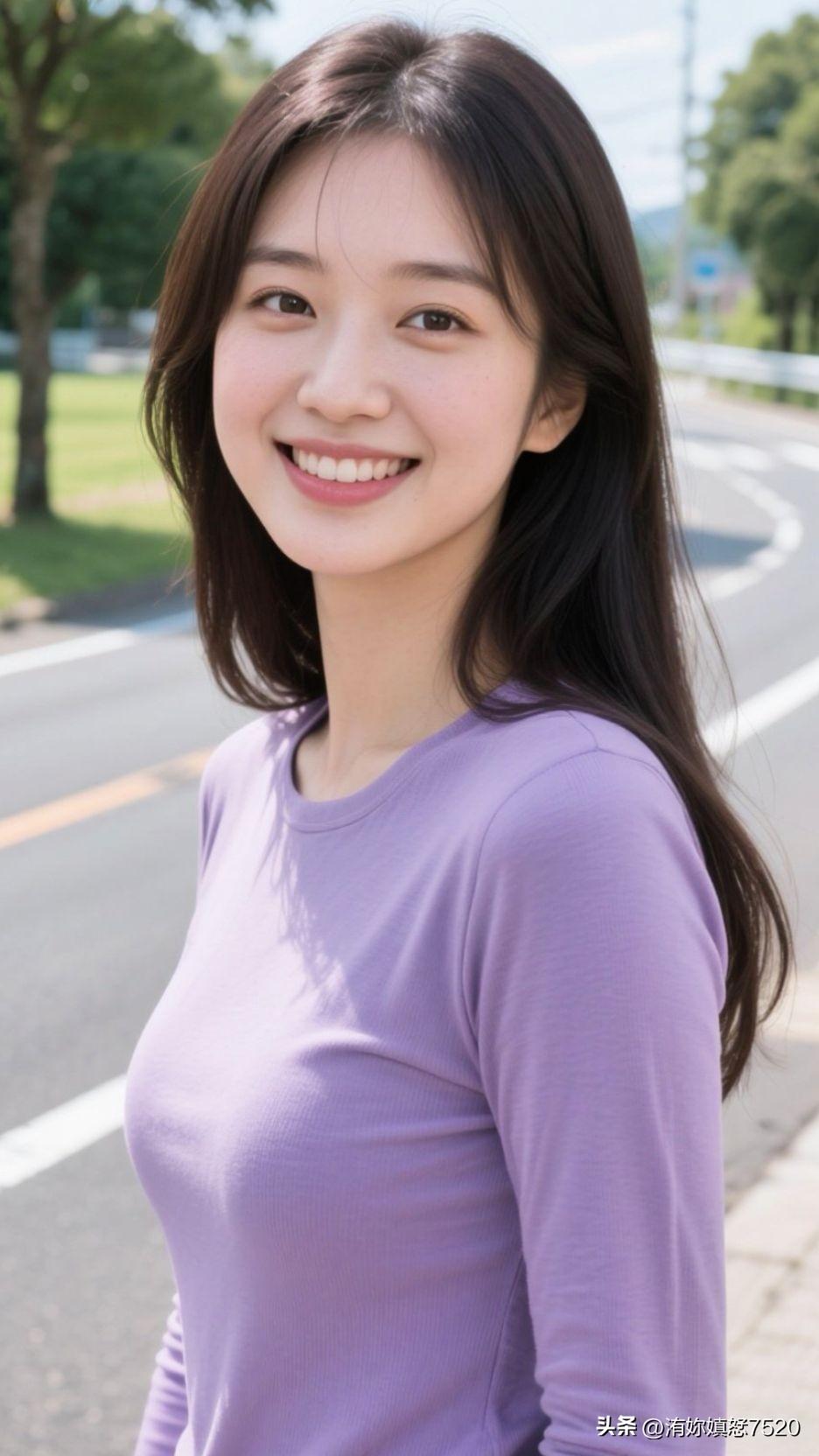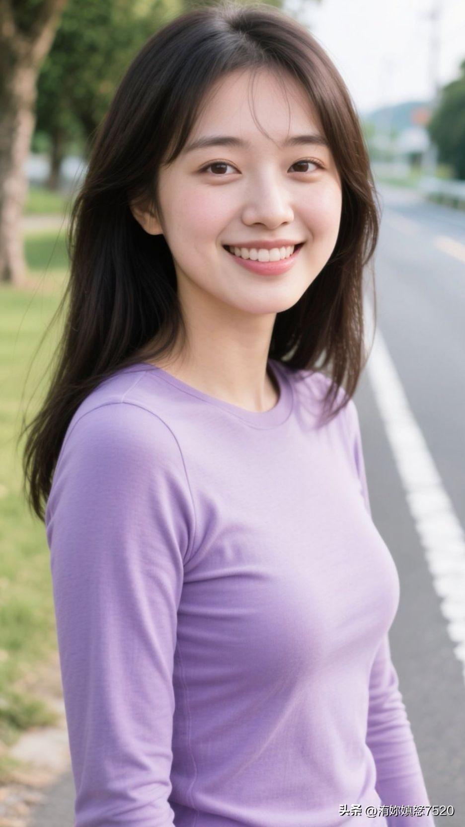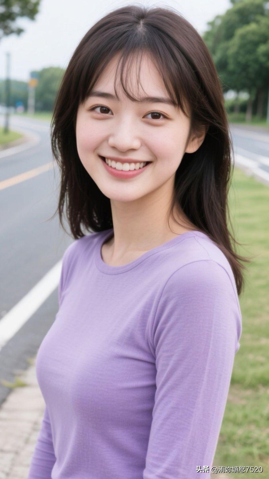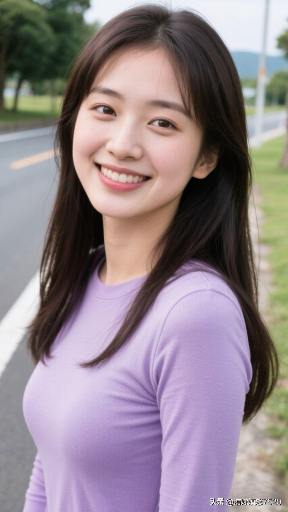 ✨ 紫衫裹着晴日的暖,她的笑是给公路的诗,每一行都亮着治愈的星。蓝格子旗袍情 紫