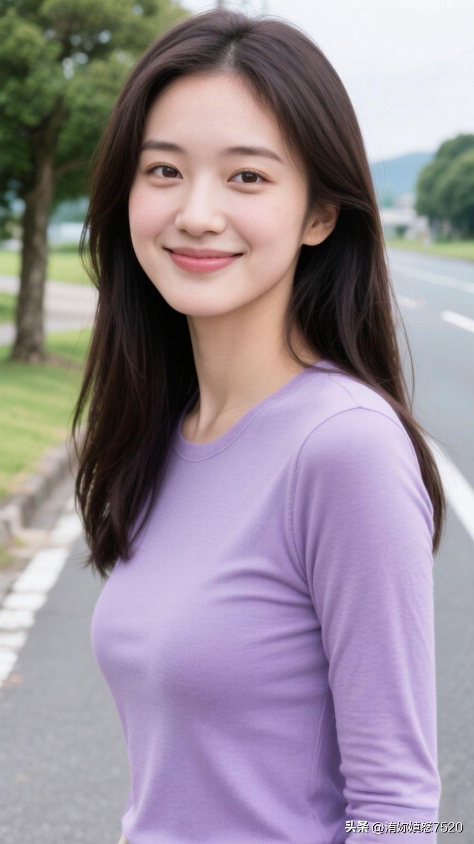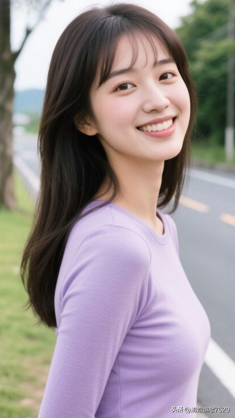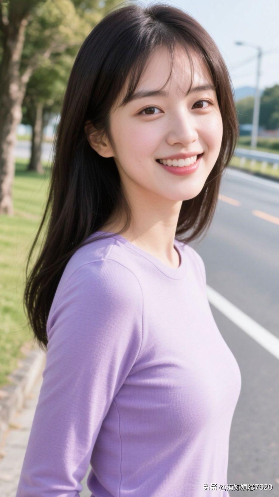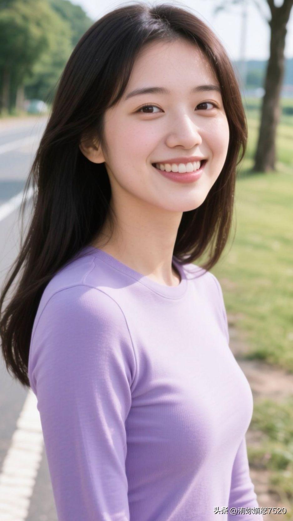 ✨ 紫衫裹着晴日的暖,她的笑是给公路的诗,每一行都亮着治愈的星。蓝格子旗袍情 紫