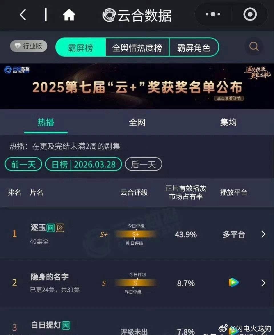 迪丽热巴、陈飞宇主演的《白日提灯》 首日云合7.8% !