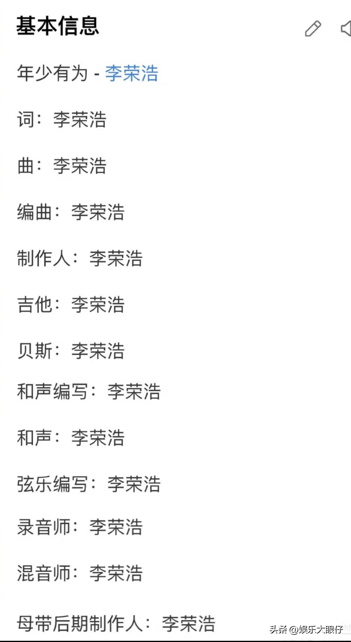 第一眼:他们从哪儿找到那么多叫“李荣浩”的人? 第二眼:牛逼,一个人顶一个团队。 第三眼:这是谁也休想从他那儿赚到一分钱啊! 真的是小小的眼睛大大的才华。听说他演唱会大屏上的动画都是他自己私信动画师搞来的,人家刚开始还以为他是骗子。毕竟也是个明星,啥都亲力亲为啊。
