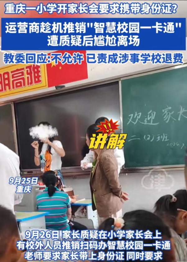 “必须严查。”重庆,一小学开家长会,要求家长带身份证,家长进教室后,才发现还有不是老师的人在教室,甚至还要求他们开通价值120元一张的“智慧校园一卡通”, 没曾想这些人竟是运营商,家长直接怒了,大喊道谁规定反对一定要办?教育局规定的吗?规定在哪?拿过来,让大家看看?没有规定我们不办,教育局的回复也是出乎意料! - 阅读前请点个赞,点个关注,主页有更多你喜欢看的内容 - 2024年9月底,重庆开州区三汇口小学金山分校发通知,家长没身份证不准进校,小县城里这等于命令,家长们带着证件准时到,心里还想着是不是要给孩子录学籍信息, 可一进门,全都傻眼了,讲台上站的根本不是老师,而是两个便装陌生人,手里拿着厚厚宣传单,他们拿起麦克风就开始讲,内容全是人脸识别、进出校提醒、食堂图书馆联动,一年只要120块,班主任就在旁边缩着,一声不吭, 这哪是家长会?分明成了招商会,通知里只说带身份证,不说干啥,家长一到现场才发现身份证就是“签约工具”,有人当场直接质问:“这是教育局要求吗?红头文件呢?拿出来让大家看看!”推销员吞吞吐吐,半天才憋出一句“大家都在办”, 更离谱的是,事后有家长发现校领导竟然藏在其他班级里帮运营商劝人掏钱,这操作把学校的公信力当商品在卖,这种把戏并非第一次,早在2023年,重庆长寿区就发生过类似事件,最后还是退款加问责, 问题是为什么总有人铤而走险?核心就在于家长软肋被精准戳中——怕不办卡孩子受影响,怕得罪老师影响学业,这让一些商家胆子越来越大,觉得可以冒险,学校讲台成了商业场地,教育底线被忽视, 家长们拿身份证进校,本以为只是正常会议,却被动卷入推销,一年120块的服务看似小事,但戳中了校园管理和公信力的关键问题,学校应该是教书育人的地方,而不是商业跑马圈地的场子, 智慧校园和便民服务本意是好的,但披着教育的皮去收费,就是明目张胆的违规行为,这件事让大家意识到,教育领域的商业化渗透随时可能发生,监管链条若松动,任何环节都可能成为漏洞, 2024年9月26日,开州区教委出手,明确定性违规,全额退款,校长停职查办,教育部门动作快,但背后问题让人细思极恐,那些推销员能大摇大摆上讲台,中间审批环节有多少人选择了闭眼, 家长们的态度最让人欣慰,他们不再忍气吞声,也不再算了算了,而是直接要说法、要文件、要真相,这种较真劲儿本身就是智慧,它提醒学校,教育必须守住“利”的底线,校园不是生意场, 整个事件告诉我们,制度和监督缺失,家长和教师的信任就会被商业力量利用,学校必须明确责任和界限,否则看似小小的120块钱背后,可能隐藏着更大的公信力和教育伦理危机, 家长的坚持和维权不是简单的闹事,而是对教育核心价值的捍卫,他们用行动告诉学校和社会,教育不是赚钱的工具,而是孩子成长和学习的安全空间,任何侵犯都必须被制止, 从这件事看,校园管理需要透明,任何服务都要公开、合法、合理,学校必须明确界线,让家长安心,老师专注教学,这样教育的本质才不会被商业利益侵蚀,也才能真正做到智慧管理, 最终,这次事件不仅是一次退款和问责,更是一堂生动的社会课,让所有人明白,家长的监督和坚持,是守护教育底线的最有效力量,学校只有认真面对,教育秩序和公信力才能长久。