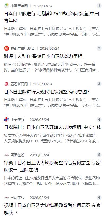 奉劝所有中国人,大家一定要做好心理准备!央视近期通过新闻联播、军事报道等权威平台发出明确警示,这份警示背后是对日本一系列军事动作的精准研判,也给所有中国人敲响了警钟。 麻烦看官老爷们右上角点击一下“关注”,既方便您进行讨论和分享,又能给您带来不一样的参与感,感谢您的支持! 咱们平心静气地聊聊最近身边的大事。最近央视新闻联播、军事报道这些权威平台,都在密集关注咱们周边安全环境的变化,尤其是日本那边一系列的大动作,信号已经非常明显了,咱们心里都得有个底。 先看日本内部的组织架构。就在不久前,日本防卫省对自家自卫队动了“大手术”。海上自卫队那边,直接把“护卫舰队”和“扫雷队群”拆了,重新攒了一个叫“水上舰队”的新单位。这不光是换个名字那么简单,而是要把海上的各种作战力量拧成一股绳,统一指挥。在这个新舰队下面,还特意设了个“水陆两栖机雷战群”,把扫雷艇和运输舰都拢在一起,专门配合陆上自卫队的离岛夺回部队。这种打破传统的做法,明显是冲着加强进攻性和远程投送能力去的,传统的防御味道已经非常淡了。 不仅如此,空中的力量也在悄悄升级。负责监控太空的“宇宙作战群”,很快就要升格为“宇宙作战团”,下一步就是“宇宙作战集团”,人数也要大幅增加。这摆明了是要把军事触角伸向太空,为未来的海陆空作战提供全天候的情报支援。这么一套组合拳下来,日本的军事架构已经彻底变味了。 更让人捏把汗的是他们的武器清单。今年三月份,日本在熊本县开始部署第一批国产的改进型12式反舰导弹,这玩意儿射程能超过1000公里。紧接着,美国那批“战斧”巡航导弹也到位了,主要装在宙斯盾舰上,射程能到1600公里。与此同时,他们还在研发射程更远的高超音速滑翔弹。手里攥着这些进攻性家伙,日本那个“专守防卫”的老规矩算是彻底扔一边了,以前说好了不许有“对敌基地攻击能力”,现在这层窗户纸已经捅破了。 花钱方面更是毫不手软。日本2026财年的防卫预算首度突破了9万亿日元大关,这已经是连续第14年往上涨了。更夸张的是,防卫费占GDP的比重一口气从1%出头拉到了2%以上,这已经是北约国家的标准线了。算上各种补充预算,实际开支还要更高。这么多钱砸下去,全是为了买远程导弹、搞远洋舰队和太空战,和平宪法第九条那些条款,基本就剩个空架子了。 这种穷兵黩武的势头,跟日本国内的政治风向也脱不了干系。经济一直不景气,加上右翼思潮回潮,一些政客为了捞取政治资本,拼命炒作外部威胁,美化那段不光彩的侵略历史,一门心思要修改和平宪法。今年早些时候,日本首相指名选举刚结束,高市早苗就迫不及待地放出修宪信号。这种试图从根本上为“再军事化”扫清障碍的做法,引发了不少日本民众的担忧,东京等地已经爆发了多场抗议集会。 但光靠日本自己,步子也迈不了这么大。美国为了推行它的“印太战略”,长期对日本的军事松绑睁一只眼闭一只眼,甚至有意在后面推波助澜。从默许日本发展进攻性武器,到支持其太空军事化,美国就是把日本当成了自己在亚太地区最顺手的一枚棋子。只要日本老老实实配合它的战略,美国就对日本的扩军行为视而不见。 面对这种步步紧逼的态势,咱们中国的立场很清楚。一方面,我们始终敞开对话的大门,反复呼吁日本要正视历史,老老实实走和平发展的路,别在危险扩军的道上越跑越远。另一方面,外交部、国防部也多次公开警告,日方任何企图颠覆战后国际秩序的冒险行为,都将是死路一条。更重要的是,咱们嘴上讲道理,手里也攥着硬家伙。中国的国防实力一天比一天强大,这就是维护国家主权和领土完整最硬的底牌。 总之,邻居家里添了多少“家当”,咱们心里得有数。这不是什么小题大做,而是实实在在的安全挑战。但只要咱们自己站稳了,发展得好,国防力量足够强大,就足以遏制任何形式的军事冒险和军国主义野心的复燃。对于这些动向,大家心里有数、保持关注就好。