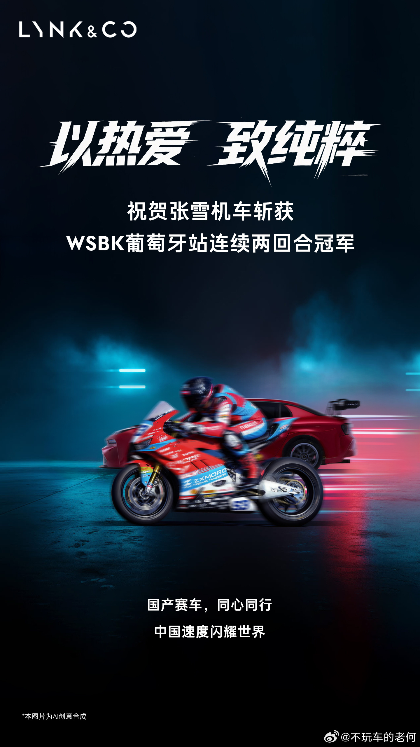 这两天在看央视新闻的视频的时候,看到熟悉的标题:中国速度闪耀世界 这个词儿太熟悉了,这份荣耀同样是中国汽车工业的共同骄傲,与领克汽车的赛道精神一脉相承 。张雪机车厂队车手驾驶820RR-RS赛车,以近4秒的绝对优势力压杜卡迪、雅马哈等国际豪强,拿下中国品牌在WSBK顶级赛事的首个冠军,打破欧美日厂商数十年垄断。这不仅是国产机车的历史性突破,更以自研819cc三缸发动机的硬核实力,诠释了“以赛促研、以赛促产”的中国智造路径 。领克汽车同样是赛道上的中国标杆,凭借CMA架构打造的03 TCR赛车,曾终结WTCR赛事十年统治,成就“七年九冠”传奇。两者虽分属两轮与四轮,却共享同一基因——以自主创新突破技术壁垒,用赛道实力证明中国制造的崛起。以后这样的故事会越来越多,中国品牌在不同赛道上持续刷新纪录,让“中国速度”闪耀全球舞台。这份并肩前行的荣耀,致敬每一位为热爱死磕、为技术攻坚的中国力量 。领克祝贺张雪机车夺冠领克汽场全开