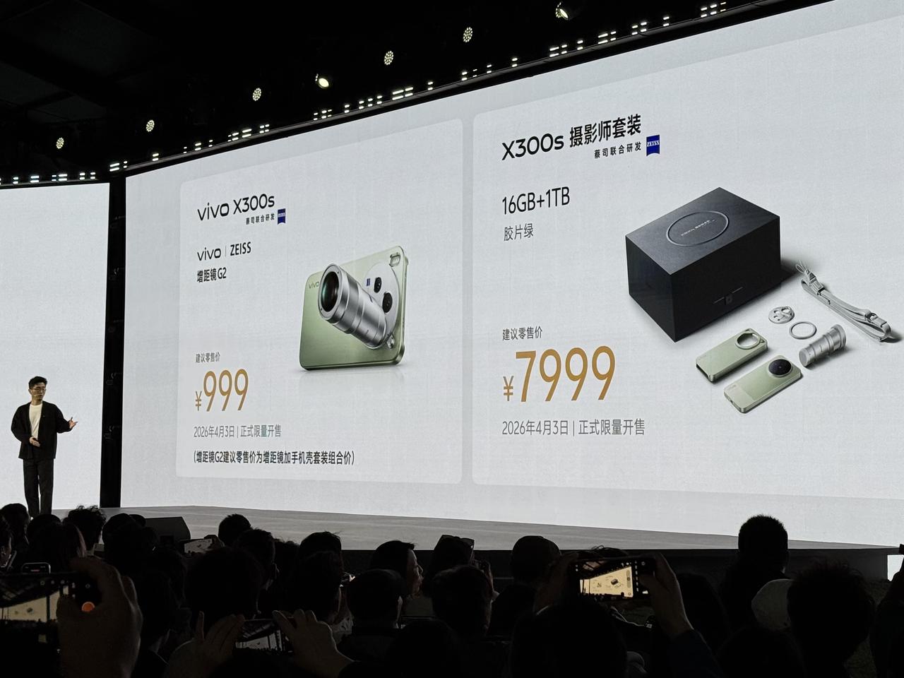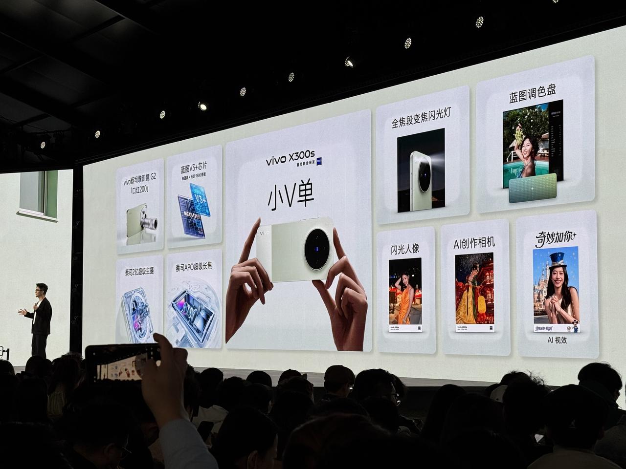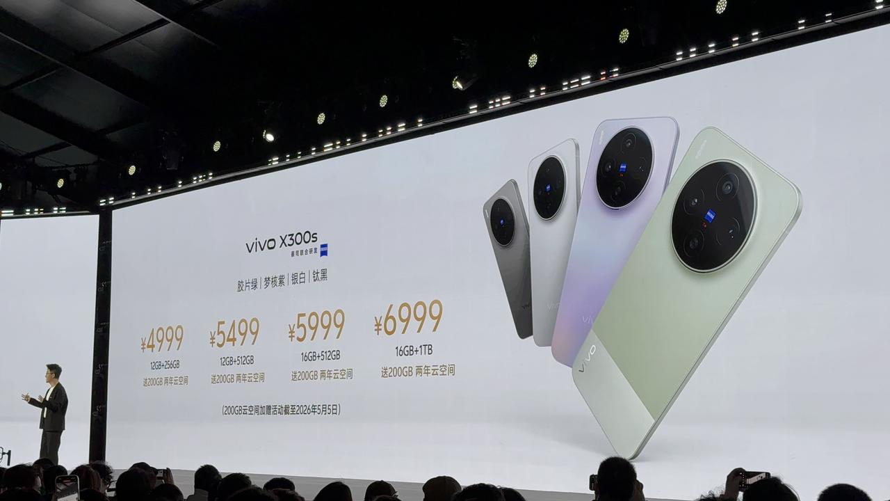 超越全能“小V单” ,vivo X300s发布:4999起 vivo X300s发布,号称超越全能的“超能小V单”,首发AI创作相机,首发蓝图调色盘,支持口红200蔡司增距镜G2,起售价比上代X200s涨了800元。 天玑9500处理器,N79频段 X系列首次搭载Monseter超核引擎 7100毫安时电池,无线闪充 6.78英寸144Hz电竞级大屏 对称双扬Pro,定制超感振动马达 2亿像素1/1.4英寸蔡司主摄 蔡司APO超级长焦,第二代全焦段变焦闪光灯 12GB+256GB:4999元 12GB+512GB:5499元 16GB+512GB:5999元 16GB+1TB:6999元